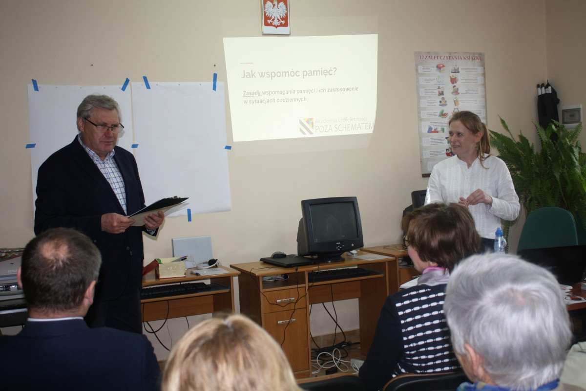 Prelegentka za pomocą przykładów, prezentacji i ciekawych ćwiczeń w plastyczny i niezwykle interesujący sposób omówiła etapy przyswajania wiedzy i zapamiętywania informacji oraz ćwiczenia pamięci. Podała też kilka rad, które należy stosować, by jak najdłużej cieszyć się dobrą pamięcią. Na spotkaniu obecny był dyrektor GBP – Jacenty Musiał, kierownik Gminnego Ośrodka Pomocy Społecznej w Limanowej – Dorota Musiał oraz wójt Limanowej – Jan Skrzekut.