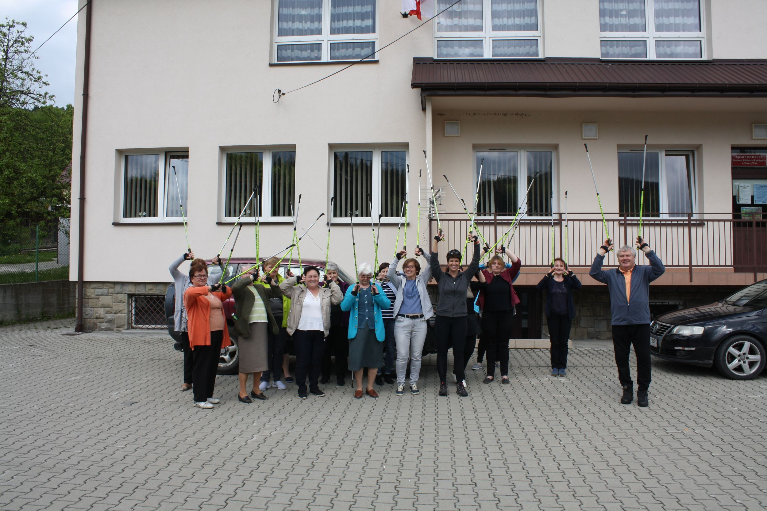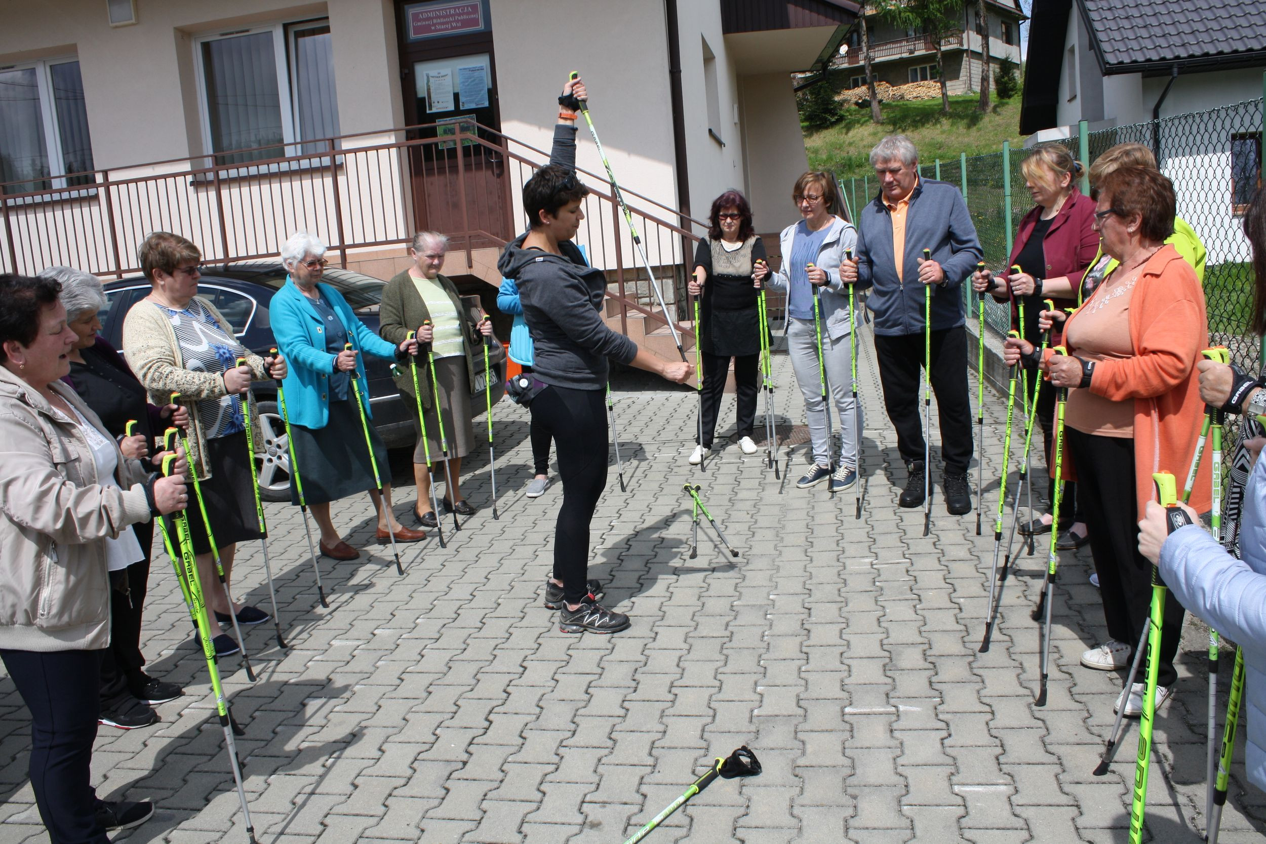 Po teoretycznym wykładzie, cała grupa wyruszyła na zajęcia praktyczne w terenie.W zajęciach uczestniczył także dyrektor GBP w Starej Wsi – Jacenty Musiał i kierownik Gminnego Ośrodka Pomocy Społecznej w Limanowej, Dorota Musiał. Każdy z uczestników otrzymał kijki i wnet place przed biblioteką w Męcinie i Starą Wsią przeistoczyły się w prawdziwe miejsca rekreacyjne. Nordic walking to idealne ćwiczenie dla każdego. W trakcie marszu pracuje aż 90 procent wszystkich mięśni.