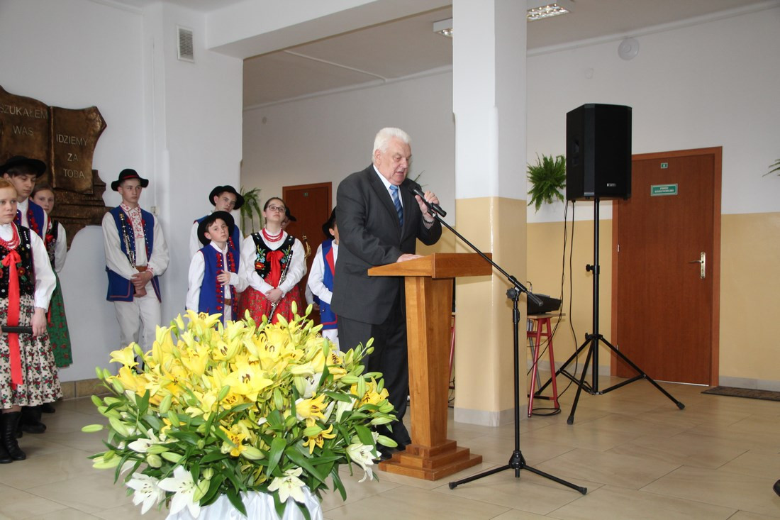 Podczas uroczystej jubileuszowej edycji dyrektor szkoły Maria Lupa powitała gości w osobach: Posła na Sejm RP Wiesława Janczyka, Wójta Gminy Limanowa Jana Skrzekuta, Dyrektor Gminnego Zespołu Obsługi Szkół Edyty Król, Kierownika Wydziału Kultury i Promocji Wojciecha Korabika, sołtysa wsi Męcina Stanisława Smędy oraz proboszcza ks. Antoniego Pisia.