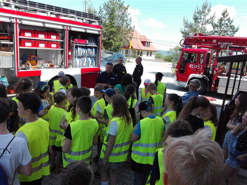 Dzięki życzliwości Komendanta Powiatowego Państwowej Straży Pożarnej w Limanowej oraz Komendant Powiatowej Policji w Limanowej przed szkołą zjawiły się dwa samochody strażackie, samochód ratownictwa oraz samochód policji. Uczniowie uczestniczyli w prelekcji oraz pokazach organizowanych przez strażaków i policjantów.