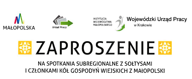 Wojewódzki Urząd Pracy w Krakowie po raz kolejny organizuje cykl spotkań subregionalnych, które odbędą się 15 czerwca w Zakopanem, 29 czerwca w Gdowie oraz 6 lipca w Limanowej. Spotkania adresowane są do lokalnych liderów, w tym szczególnie Sołtysów oraz Przewodniczących Kół Gospodyń Wiejskich. Udział w wybranym spotkaniu wymaga zgłoszenia.