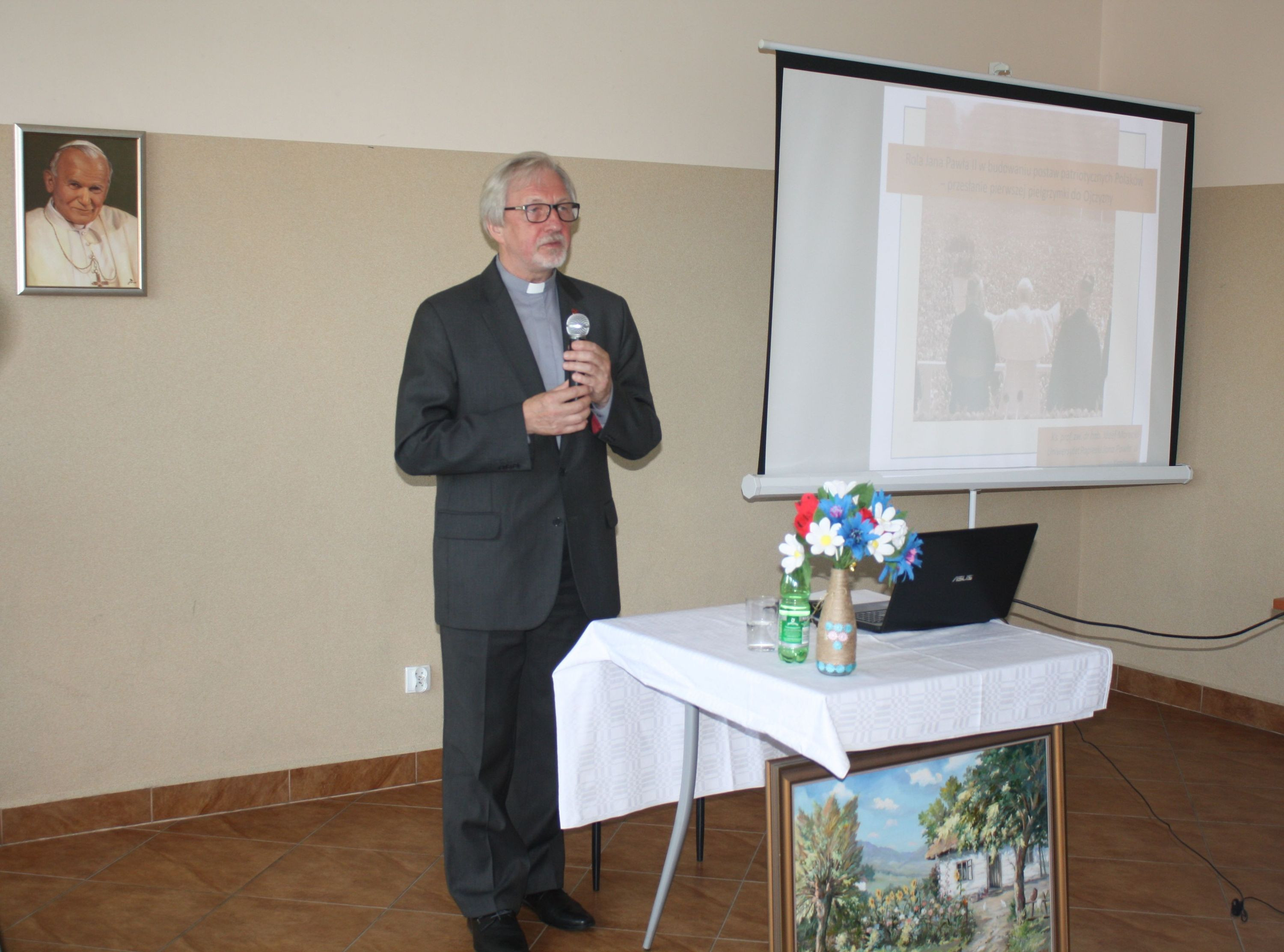Następnie głos zabrał wykładowca.Wskazał, że wybór Karola Wojtyły na Stolicę Piotrową zatrząsł fundamentami skostniałych systemów. Coś ważnego się stało. Coś wtedy pękło. Blady strach padł na ówczesne władze i jak historia pokazała, były to słuszne obawy. Pielgrzymka, do której władze starały się nie dopuścić za wszelką cenę, stała się trzęsieniem ziemi, podczas którego popękały kajdany zniewolenia a dla Polaków zajaśniała jutrzenka wolności.