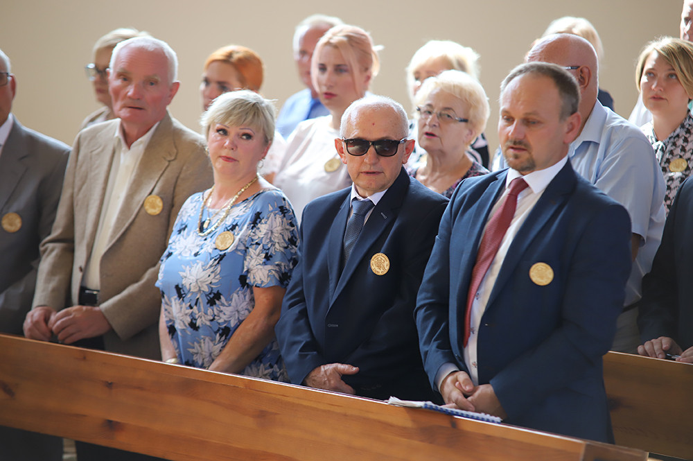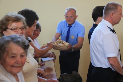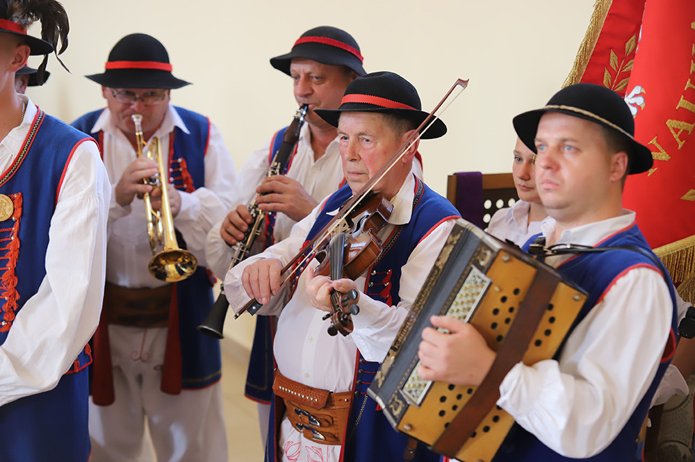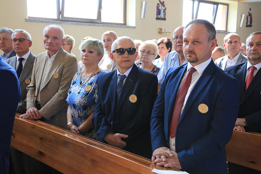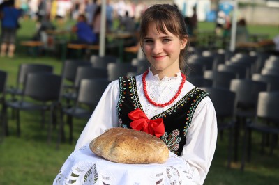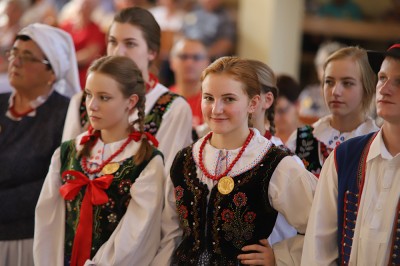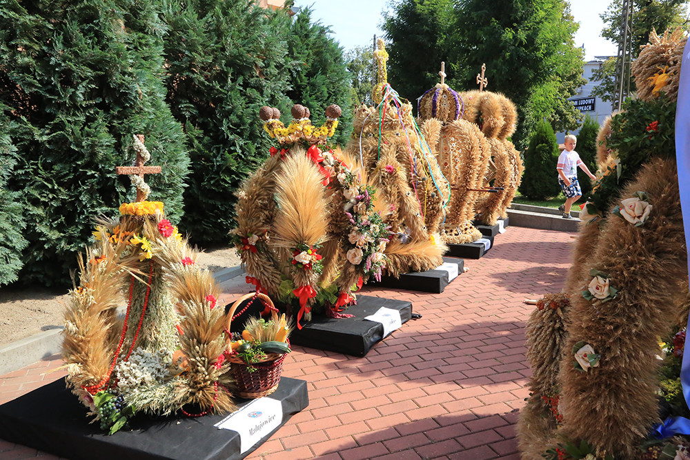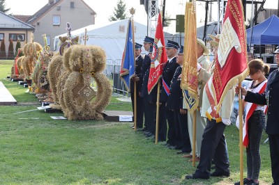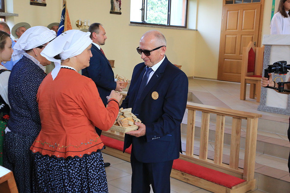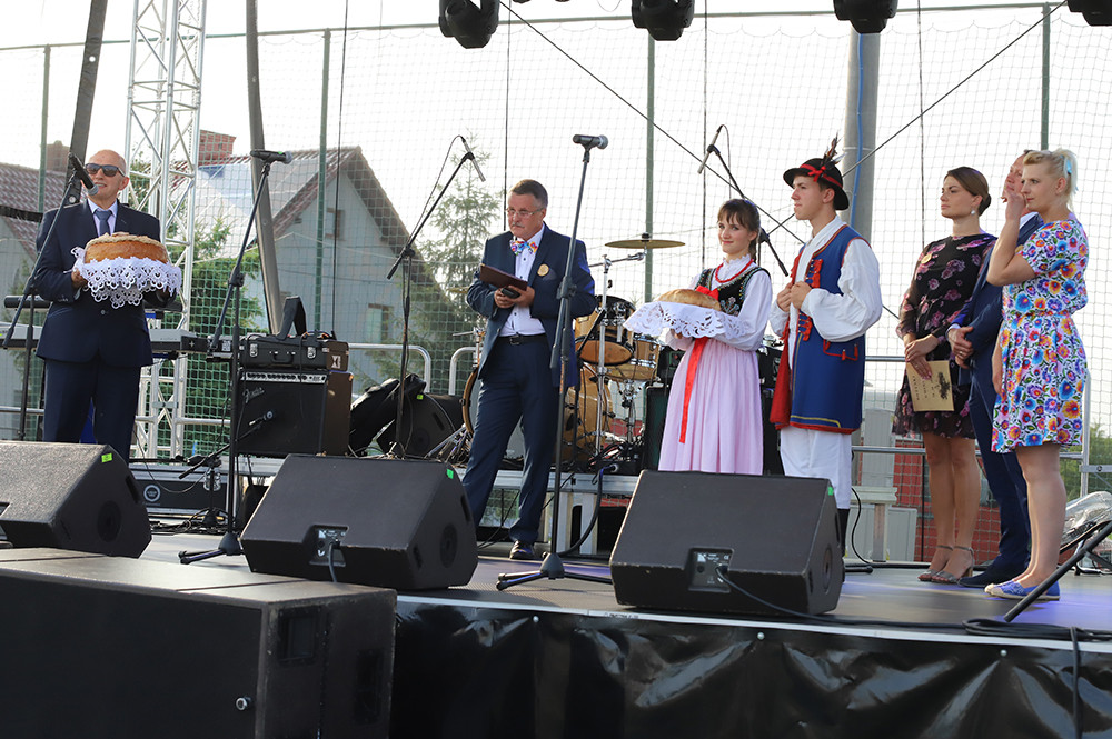 Wraz z orkiestrą dętą z Domaniowa, chórem Cantate Domino zespół "Spod Kicek" zapewnił oprawę muzyczną mszy świętej, która odprawiona została w miejscowym kościele parafialnym. Po powitaniu wszystkich gości rozpoczęła się ceremonia dożynkowa przekazania tradycyjnego chleba dożynkowego wójtowi Andrzejowi Pulitowi przez starostów dożynek. Wójt podziękował wszystkim rolnikom i mieszkańcom gminy za wysiłek i ciężką pracę przy zbiorach. Swój winiec dożynkowy oraz regionalny wypiek męciński - chleb od państwa Piwowarów, przekazany został także przez delegację z gminy Limanowa.