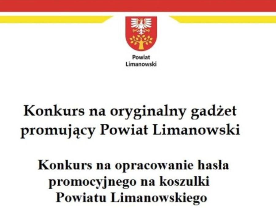Powiat Limanowski ogłosił dwa konkursy -  pierwszy na hasło na koszulki promocyjne oraz drugi - na gadżet promocyjny. Zachęcamy do uczestnictwa.