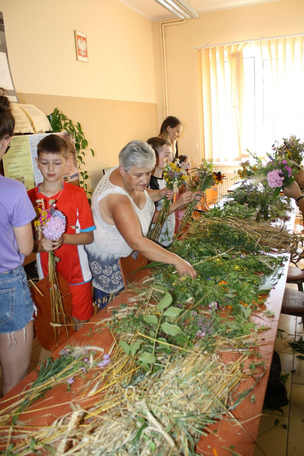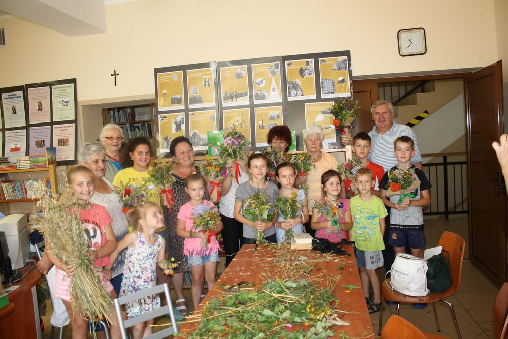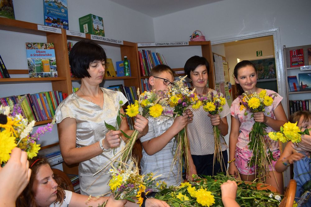 Co powinno się znaleźć w tradycyjnym bukiecie? Dlaczego się go wykonuje? Jak go wykonać? Do czego i jak wykorzystać później zasuszone zioła? Na te i na inne pytania szukano odpowiedzi podczas warsztatów prowadzonych we wszystkich gminnych bibliotekach. Jak co roku pod przewodnictwem Stanisławy Oleksy mieszkańcy wykonali tradycyjne, pachnące ziołami i złocące się kłosami zbóż wiązanki, które już 15 sierpnia zaniosą do kościoła.