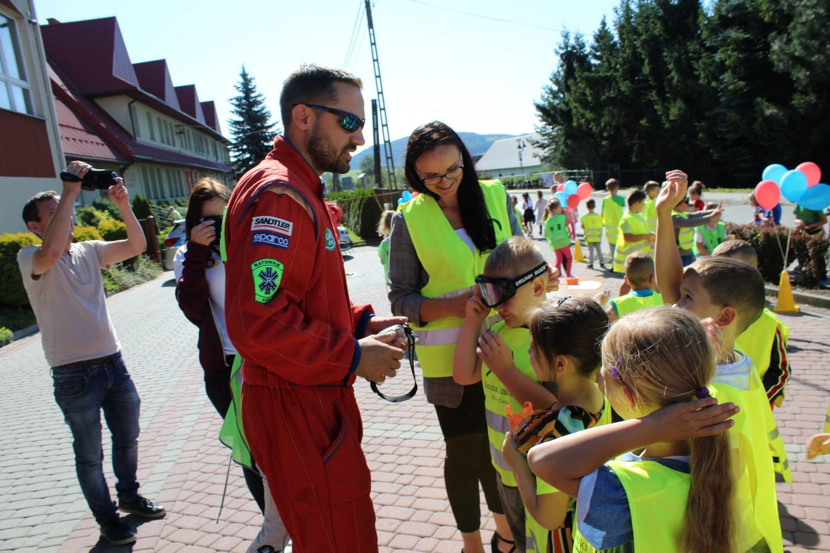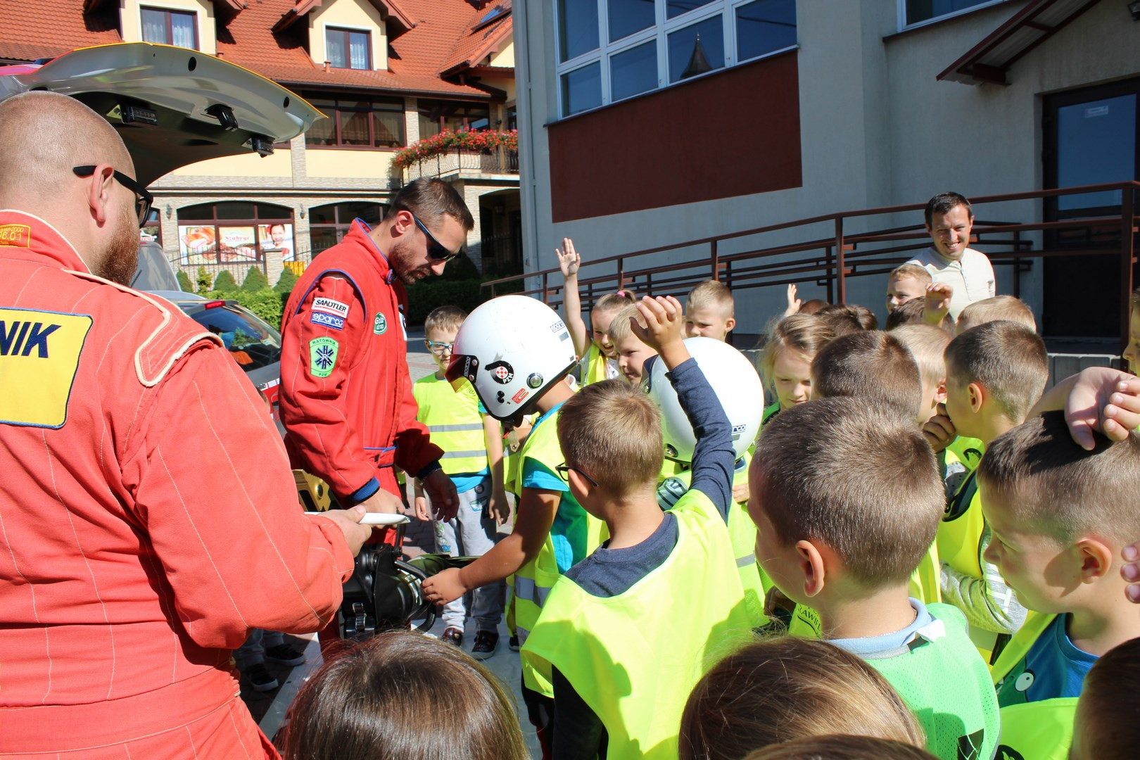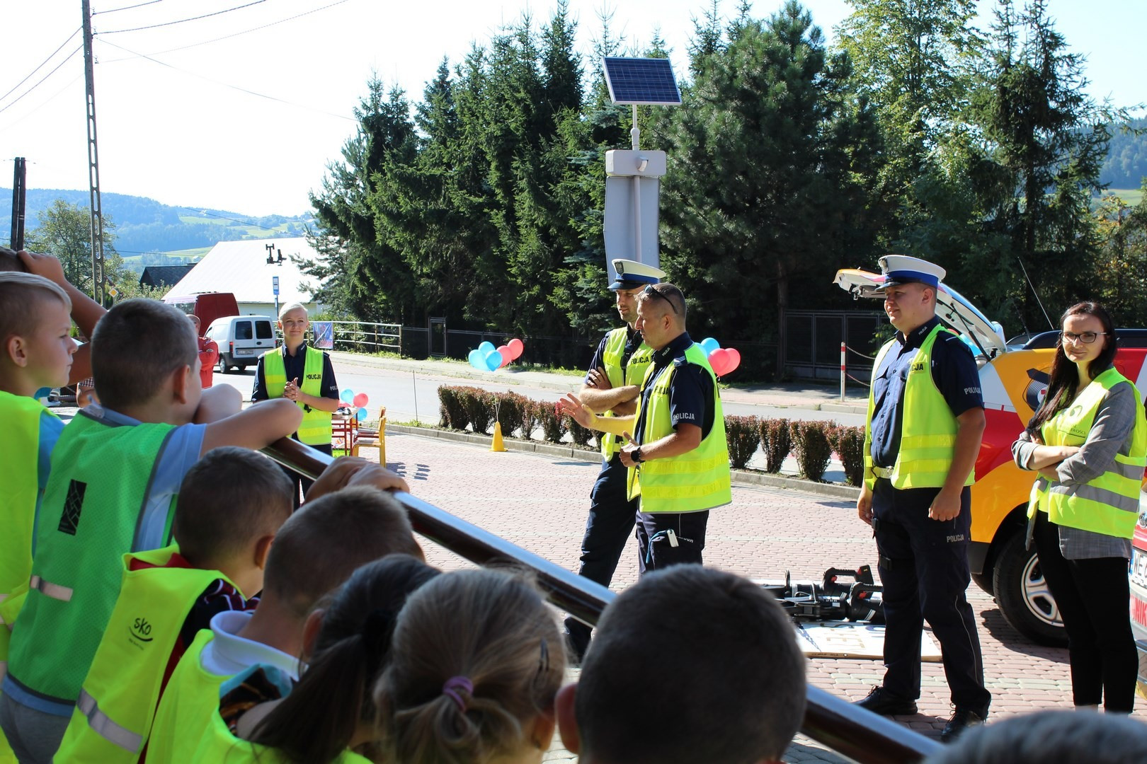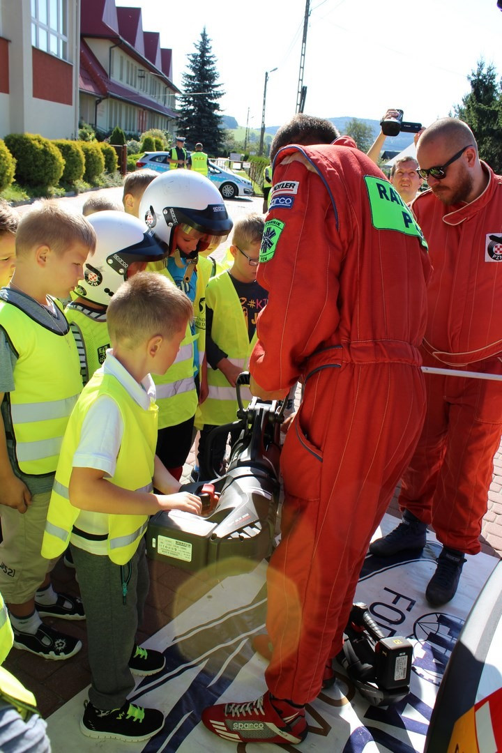 W akcji udział wzięli najmłodsi uczniowie naszej szkoły, którzy najpierw mieli okazję porozmawiać z funkcjonariuszami o zachowaniu bezpieczeństwa w drodze do szkoły i poza szkołą. Wysłuchali bardzo cennych uwag, ciekawych historii z codziennej pracy policjanta oraz zapoznali się ze sprzętem do ratowania życia i zdrowia podczas poważnych wypadków drogowych, który dzięki uprzejmości Auto Moto Klubu Limanowa został zaprezentowany. Potem odbyła się praktyczna nauka poruszania po drodze oraz przechodzenia przez jezdnię, a to wszystko oczywiście pod czujnym okiem policjantów.