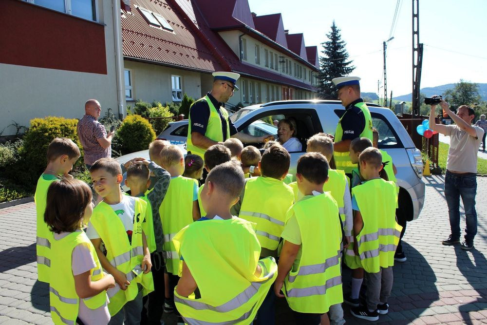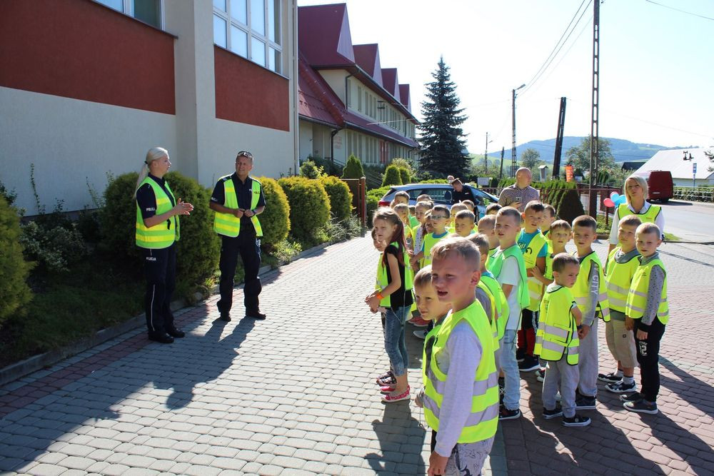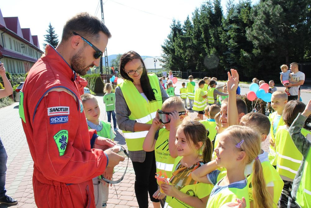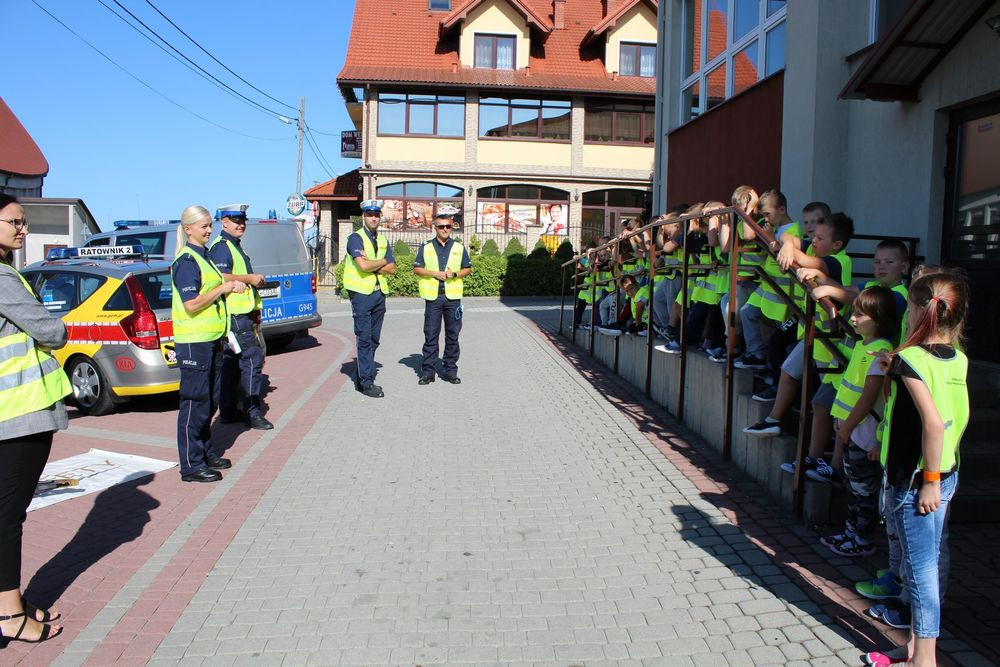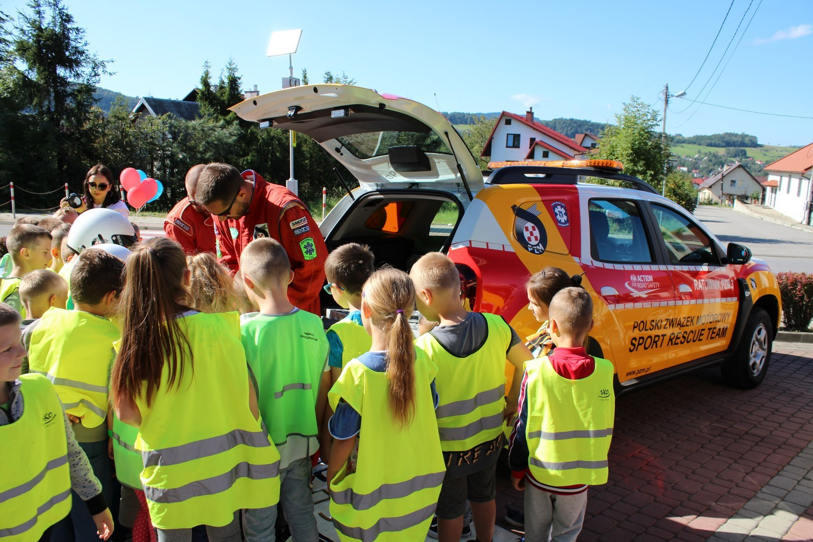 W akcji udział wzięli najmłodsi uczniowie naszej szkoły, którzy najpierw mieli okazję porozmawiać z funkcjonariuszami o zachowaniu bezpieczeństwa w drodze do szkoły i poza szkołą. Wysłuchali bardzo cennych uwag, ciekawych historii z codziennej pracy policjanta oraz zapoznali się ze sprzętem do ratowania życia i zdrowia podczas poważnych wypadków drogowych, który dzięki uprzejmości Auto Moto Klubu Limanowa został zaprezentowany. Potem odbyła się praktyczna nauka poruszania po drodze oraz przechodzenia przez jezdnię, a to wszystko oczywiście pod czujnym okiem policjantów.