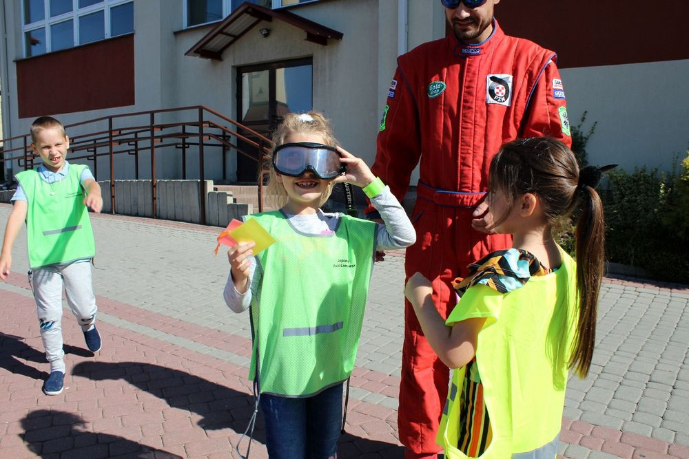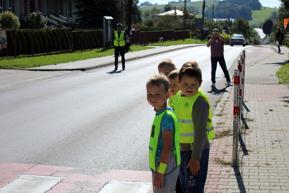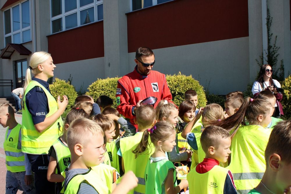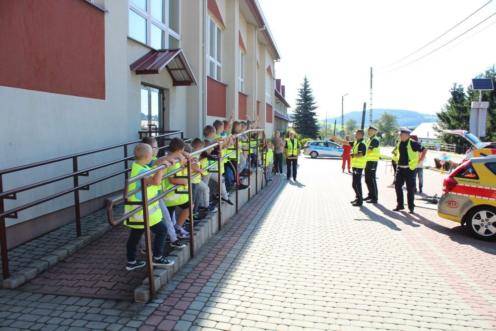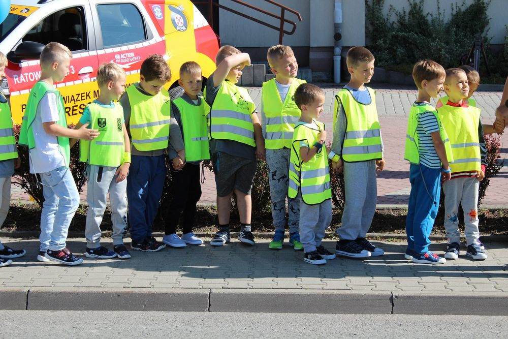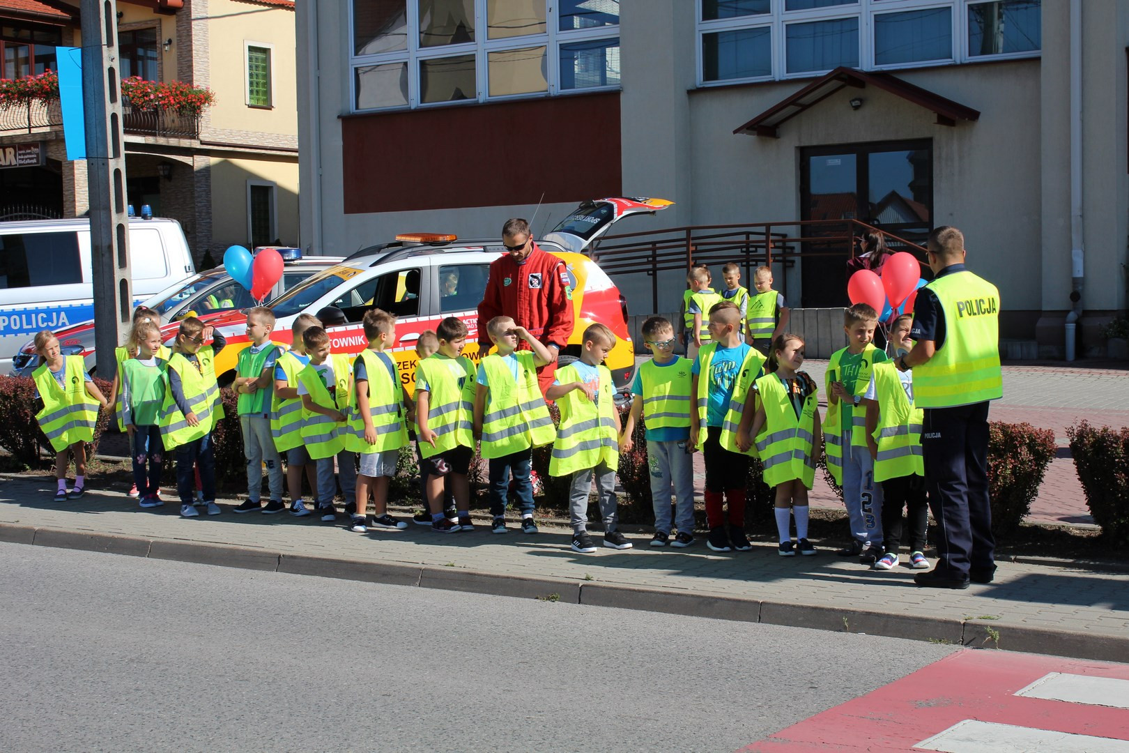 W akcji udział wzięli najmłodsi uczniowie naszej szkoły, którzy najpierw mieli okazję porozmawiać z funkcjonariuszami o zachowaniu bezpieczeństwa w drodze do szkoły i poza szkołą. Wysłuchali bardzo cennych uwag, ciekawych historii z codziennej pracy policjanta oraz zapoznali się ze sprzętem do ratowania życia i zdrowia podczas poważnych wypadków drogowych, który dzięki uprzejmości Auto Moto Klubu Limanowa został zaprezentowany. Potem odbyła się praktyczna nauka poruszania po drodze oraz przechodzenia przez jezdnię, a to wszystko oczywiście pod czujnym okiem policjantów.