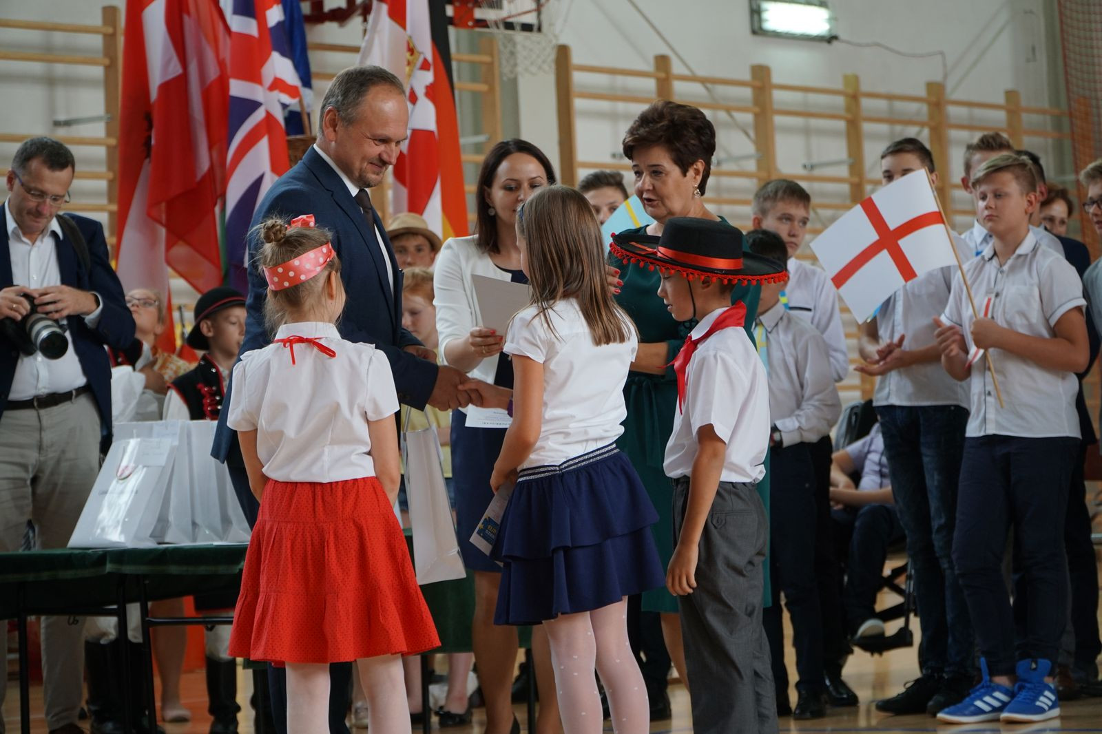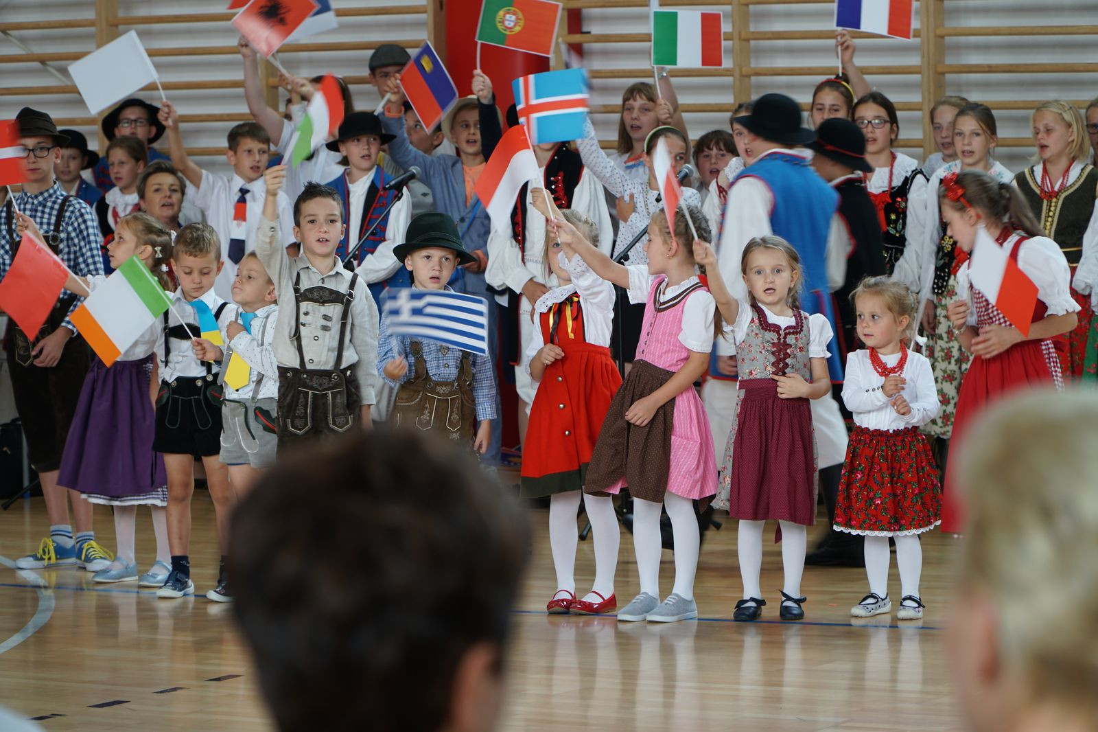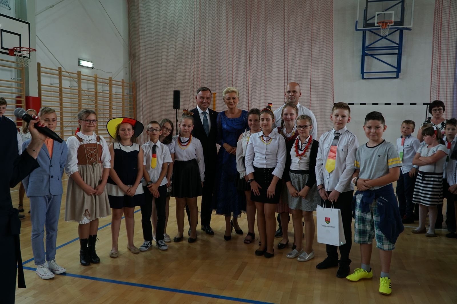 Spotkanie przybrało charakter wyjątkowej zabawy językami obcymi. Cała społeczność szkolna od najmłodszych oddziałów przedszkolnych po klasę ósmą, wraz z nauczycielami i zaproszonymi gośćmi włączyła się do programu uroczystości poprzez zabawę ruchową i śpiew. Atmosfera była nad wyraz serdeczna, dominowało uczucie radości ze spotkania. W trakcie uroczystości miał miejsce jeden moment kulminacyjny, który na długo zapadnie w pamięci wszystkim uczestnikom spotkania. Otóż w drzwiach hali sportowej, gdzie odbywała się akademia stanął Prezydent Rzeczypospolitej Polski Andrzej Duda. Wszyscy obecni zamarli ze zdumienia. Doprawdy nikt nie spodziewał się takiego obrotu sprawy, nawet sami organizatorzy. Chociaż scenariusz nie uwzględniał takiego punktu programu Dyrekcja Szkoły szybko opanowała sytuację i spontanicznie w sposób oficjalny w imieniu wszystkich powitała Głowę Państwa. Nastąpiła szybka wymiana pozdrowień, a serdecznościom nie było końca.
