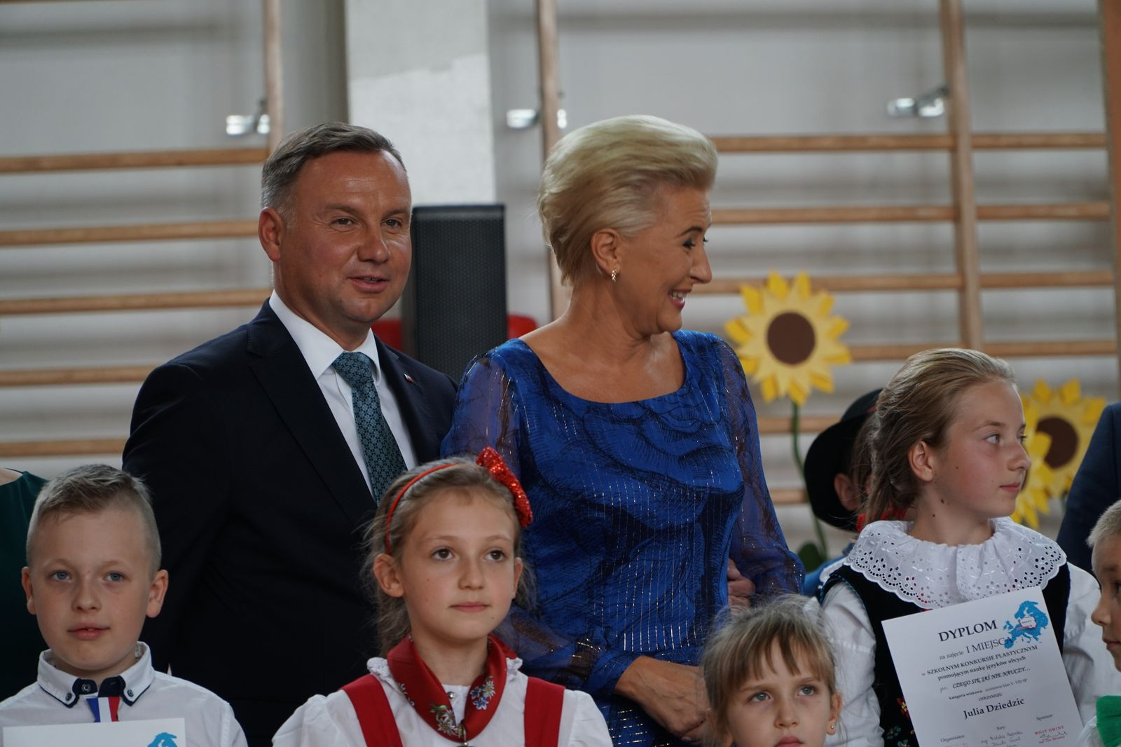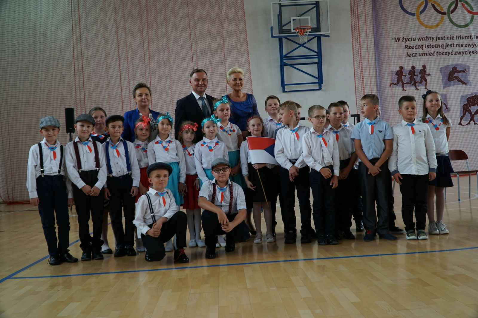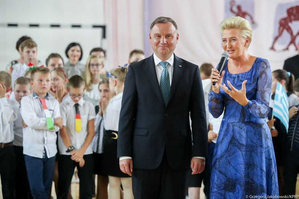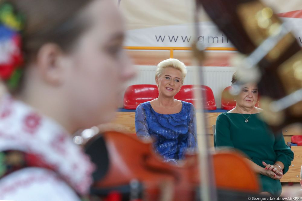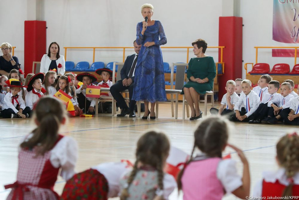 „Wielkie święto dzisiaj w naszej szkole mamy, dzisiaj Pierwszą Damę w jej progach witamy. Cieszymy się szczerze i dumę czujemy, że takiego gościa dzisiaj przyjmujemy.