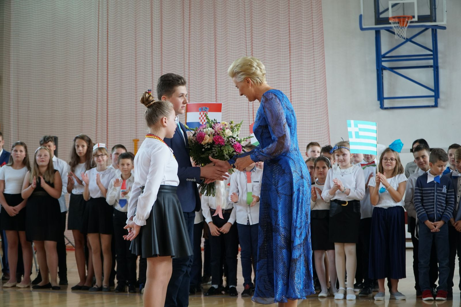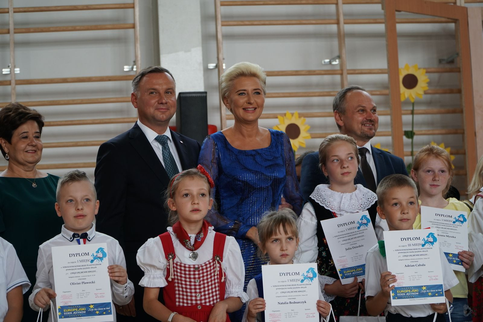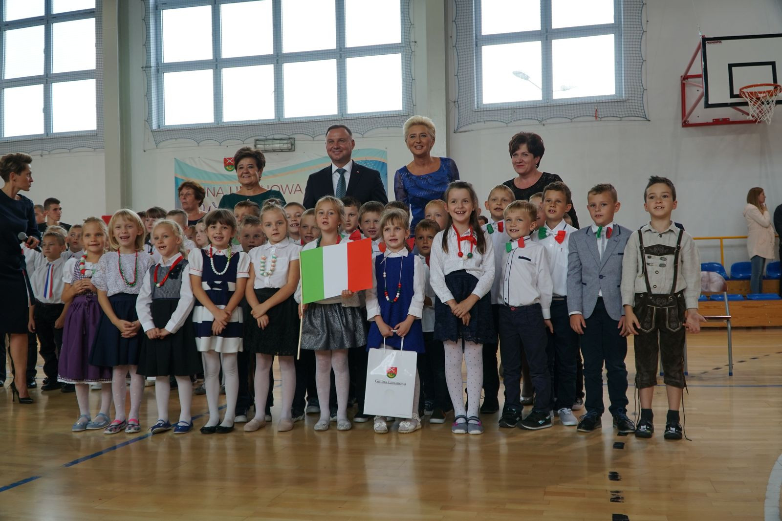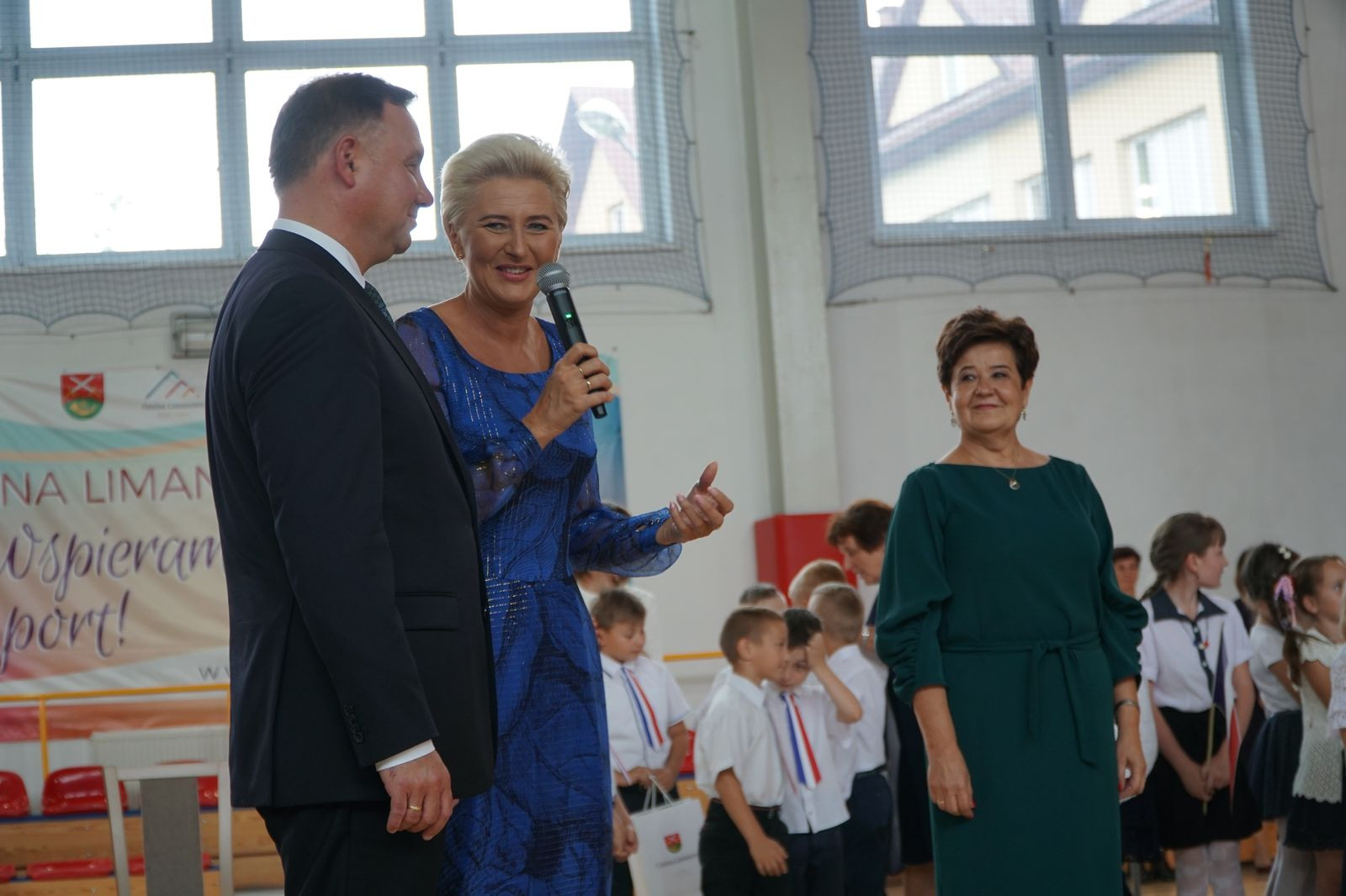 „Wielkie święto dzisiaj w naszej szkole mamy, dzisiaj Pierwszą Damę w jej progach witamy. Cieszymy się szczerze i dumę czujemy, że takiego gościa dzisiaj przyjmujemy.