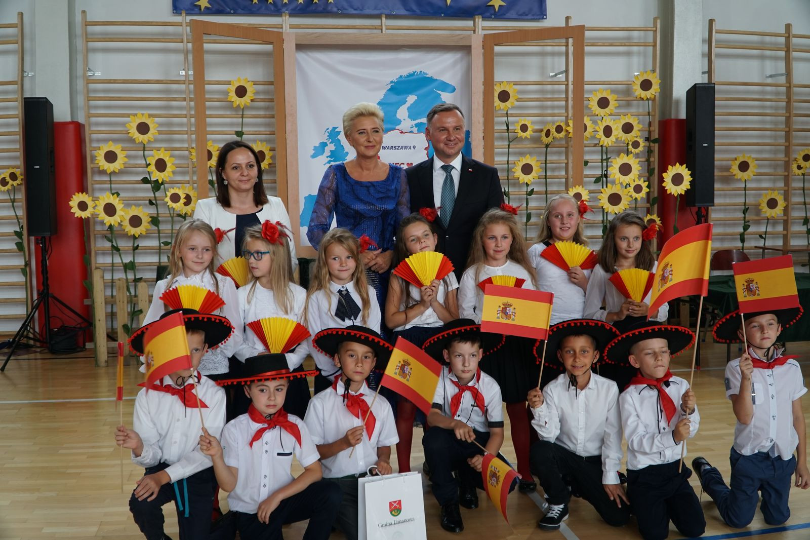 W imieniu Urzędu Gminy na ręce Pary Prezydenckiej Wójt Gminy Limanowa Jan Skrzekut, Wicewójt Wojciech Pazdan oraz Dyrektor Gminnego Zespołu Obsługi Szkół Edyta Król wręczyli prezent i przekazali pozdrowienia od mieszkańców Gminy Limanowa.