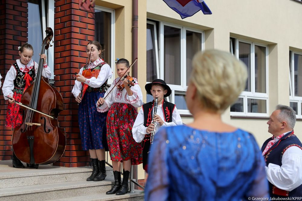 Wczoraj również Małżonkę Prezydenta powitała kapela słowami przyśpiewki :