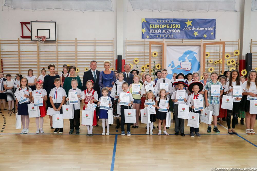 Dnia 9 września w Szkole Podstawowej im. Władysława Reymonta w Pasierbcu odbyła się uroczystość związana z corocznymi obchodami Europejskiego Dnia Języków. EDJ przypada wprawdzie na dzień 26 września, ale tego roku obchodzono go w innym terminie ze względu na potwierdzoną wcześniej obecność wyjątkowego gościa – Małżonkę Prezydenta RP – Agatę Kornhauser- Dudę. Pierwsza Dama odpowiedziała na zaproszenie Dyrekcji Szkoły Rozalii Kuchty.
