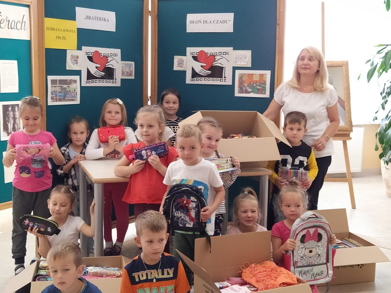23 września Szkolne Koło Wolontariatu Szkoły Podstawowej nr 1 im. Jana Pawła II w Męcinie rozpoczęło akcję charytatywną skierowaną do dzieci z krajów misyjnych pod hasłem Braterska dłoń dla Czadu. Uczniowie, nie pierwszy raz zresztą, podejmowali takie działania, gdyż w latach poprzednich prowadzone były podobne kampanie, a efekt ich potwierdzał wielką ofiarność i otwarte na pomoc serca dzieci oraz młodzieży szkolnej. Pomysł zaangażowania w działalność wspierającą misje wyrósł na kanwie współpracy szkoły z lokalną parafią, z której wywodzi się wielu misjonarzy. Wśród nich jest ks. Paweł Wróbel oraz ks. Stanisław Worwa, który od wielu już lat kieruje parafią w Czadzie i to głównie jego potrzeby wspierane były w dotychczasowych akcjach.