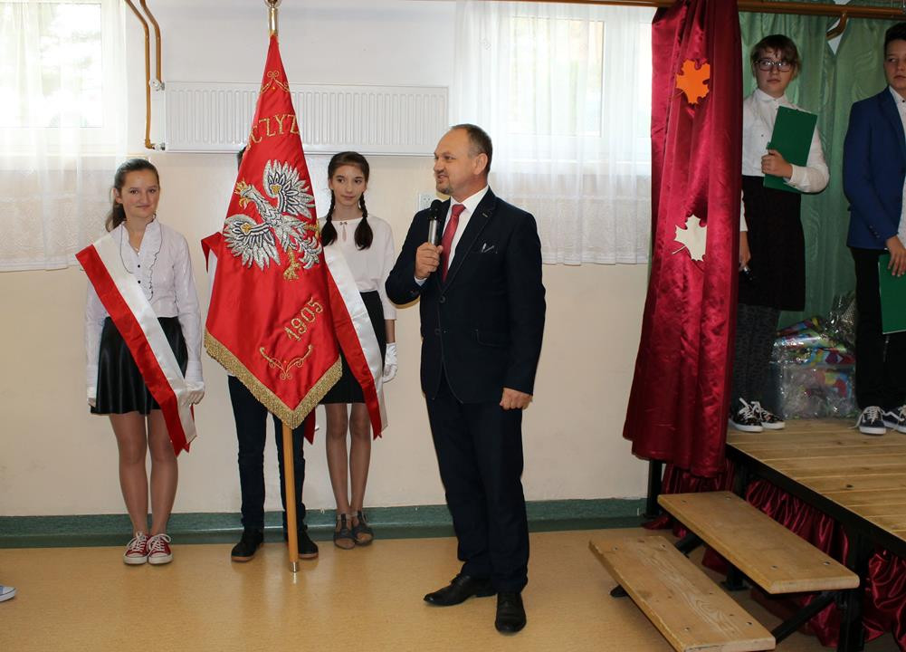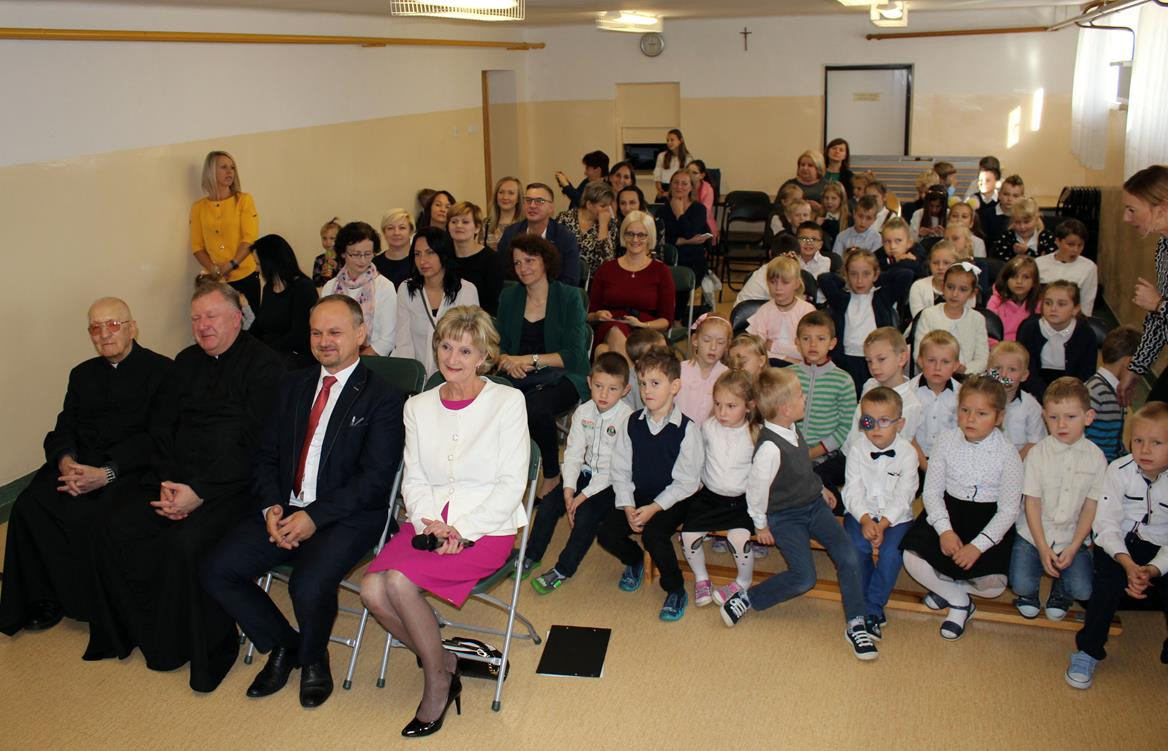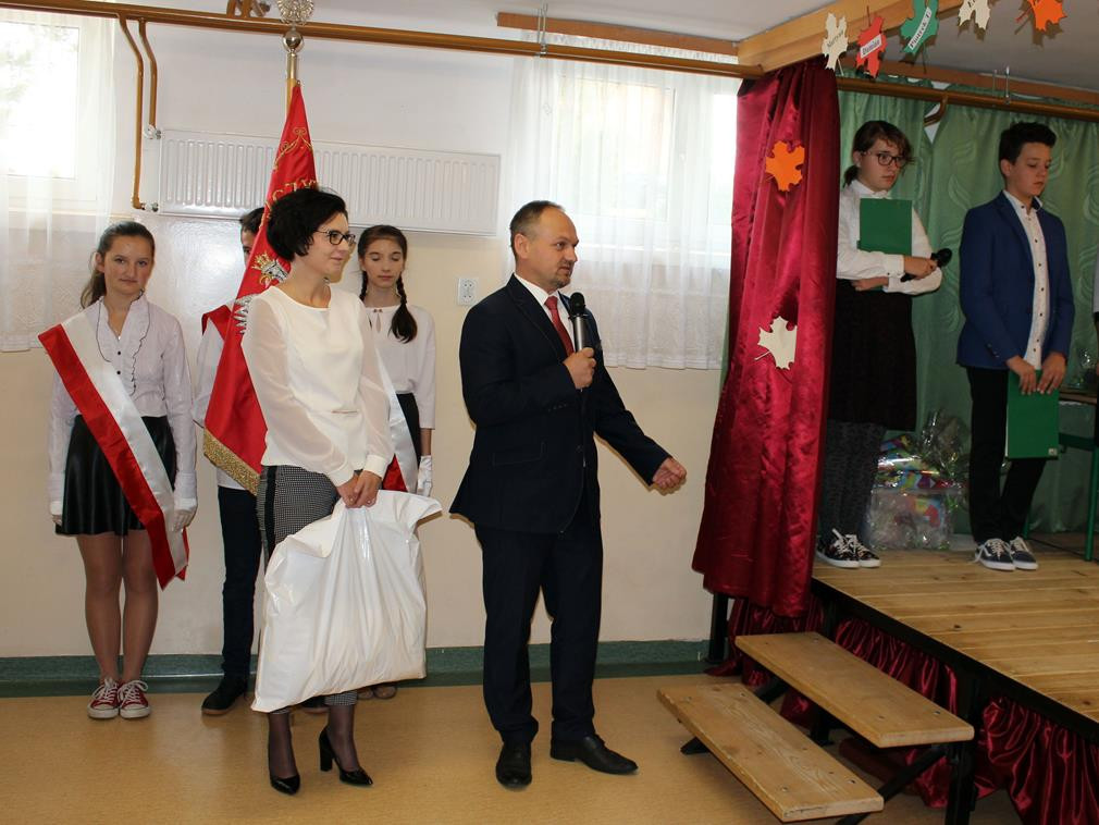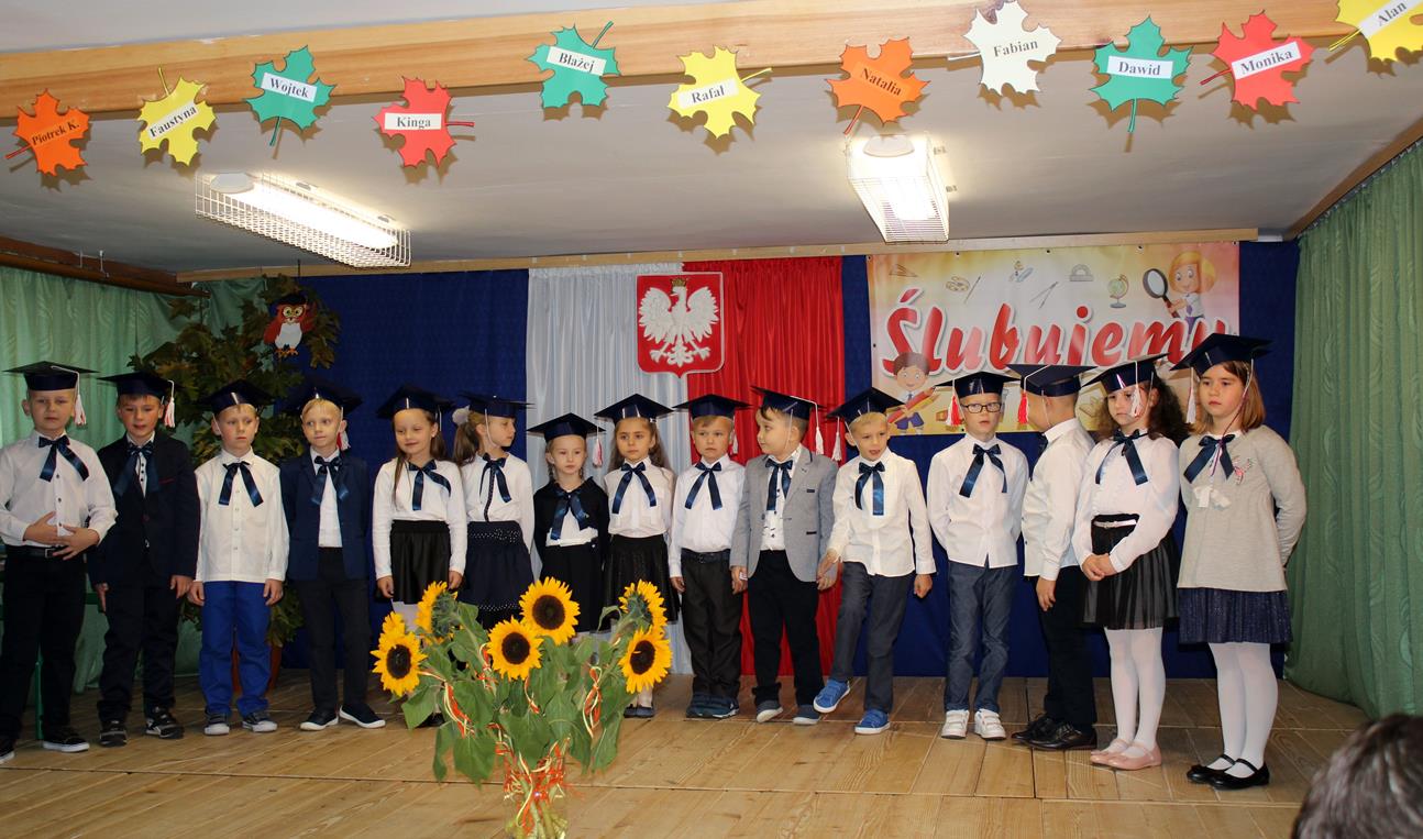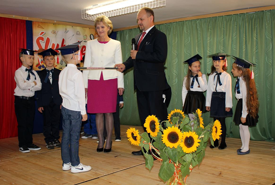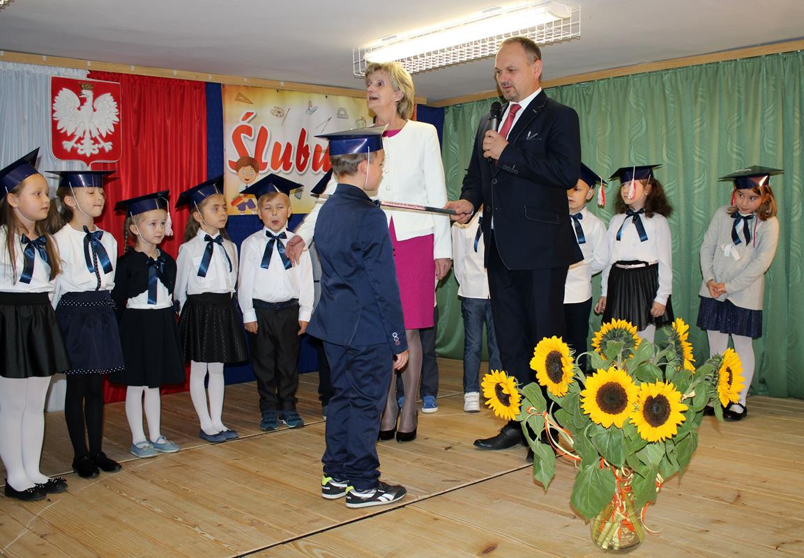 Na okoliczność pasowania odświętnie ubrani uczniowie pierwszych klas wraz z wychowawczyniami przygotowali specjalny program artystyczny i z wielkim przejęciem wystąpili przed rodzicami oraz nauczycielami. Występom z podziwem przyglądała się również zaproszona na uroczystość Dyrektor Gminnego Zespołu Obsługi Szkół Edyta Król, która wręczyła najmłodszym odblaskowe upominki, by zapewniały najmłodszym uczniom bezpieczeństwo w drodze ze szkoły.