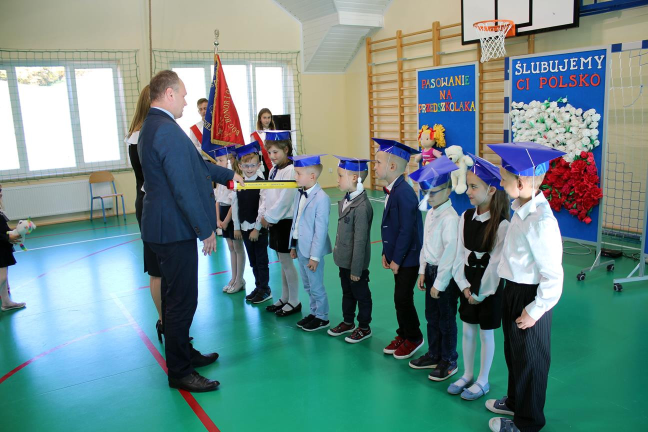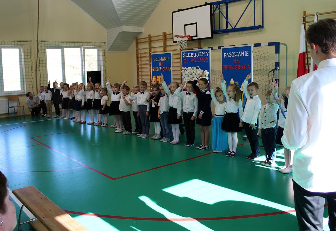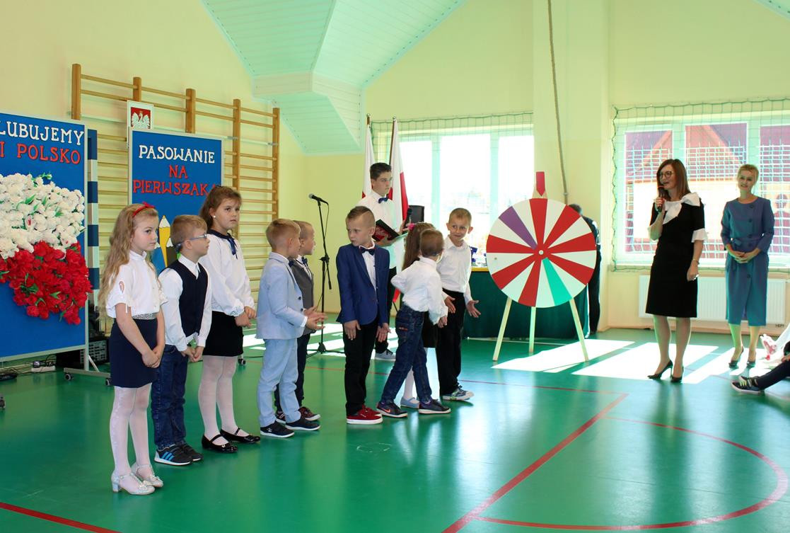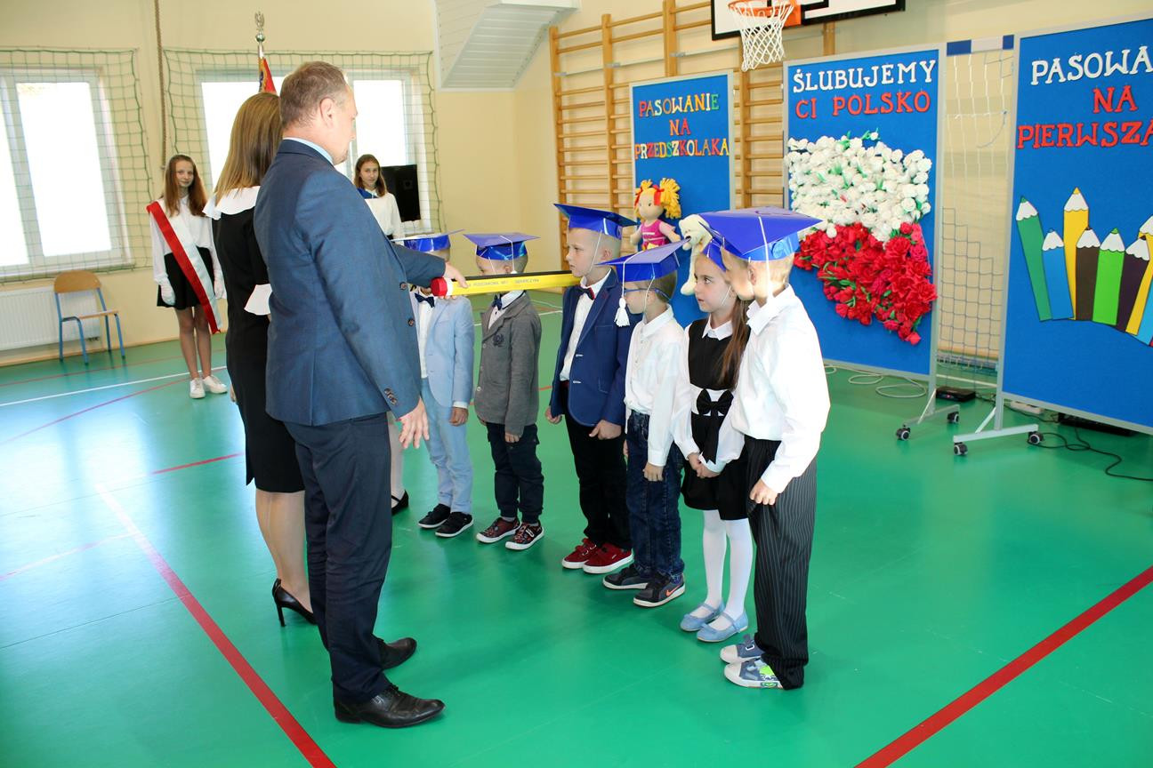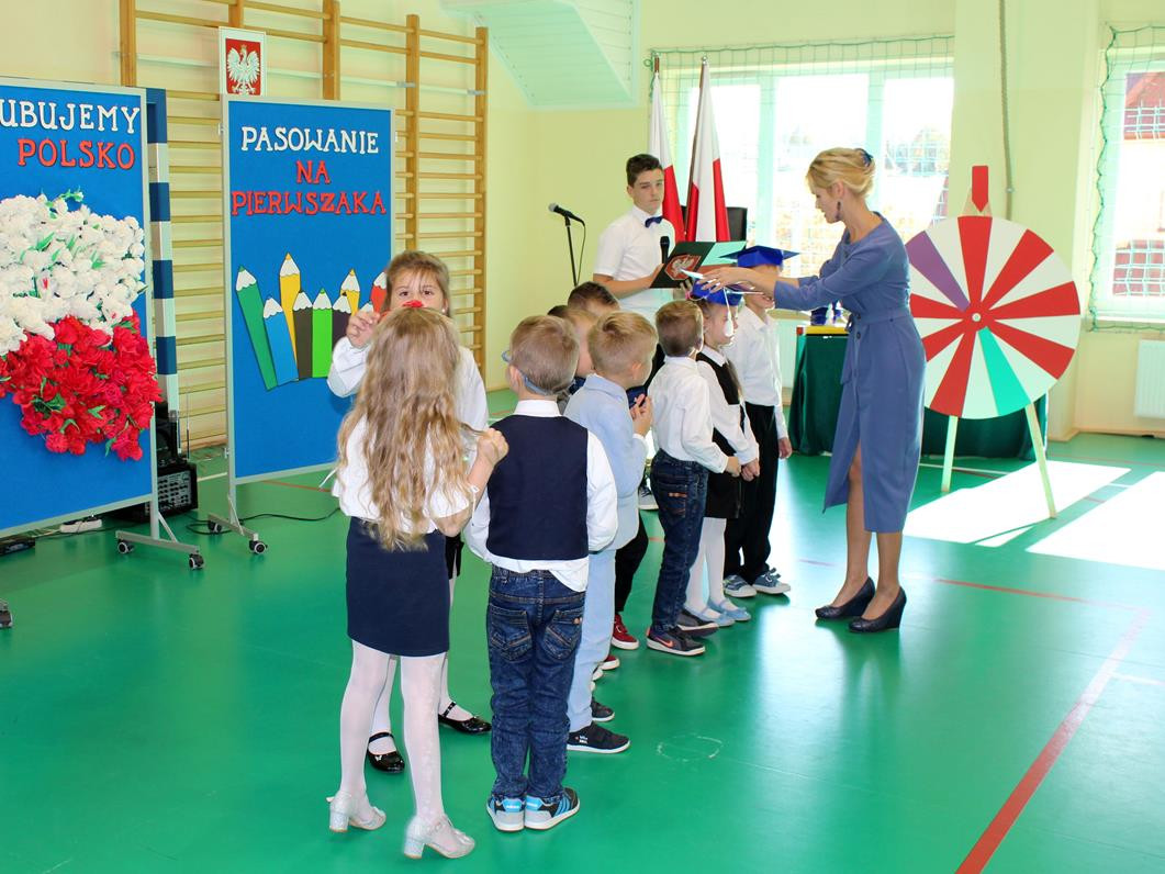 Do prowadzenia turnieju został zaproszony wójt gminy Jan Skrzekut. Uczniowie klasy pierwszej odpowiedzieli poprawnie na wszystkie pytania, które dotyczyły Polski, a szczególnie symboli narodowych. Po znakomicie zdanym teście wójt oraz Wiesława Tudaj – dyrektor szkoły dokonali aktu pasowania pierwszaków na uczniów. Przedszkolaki na pamiątkę pasowania otrzymały ordery.