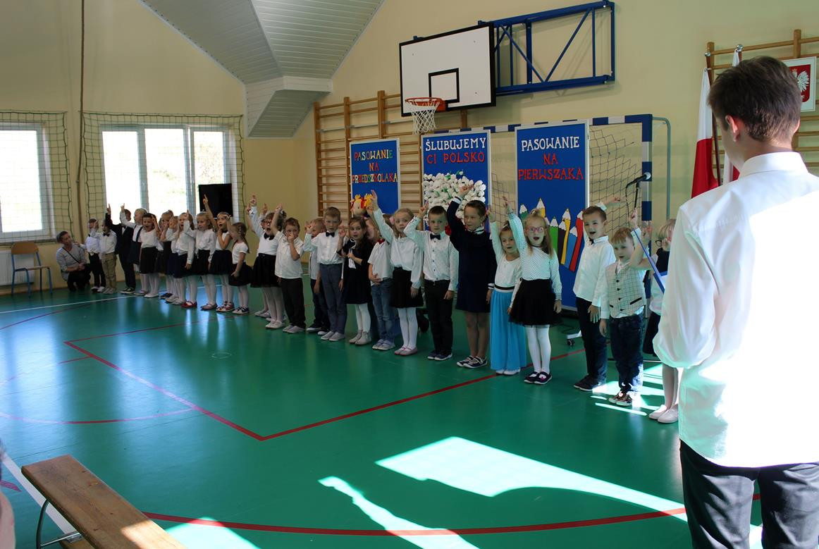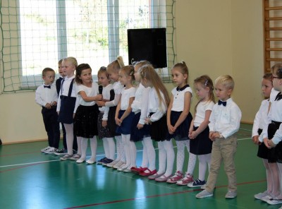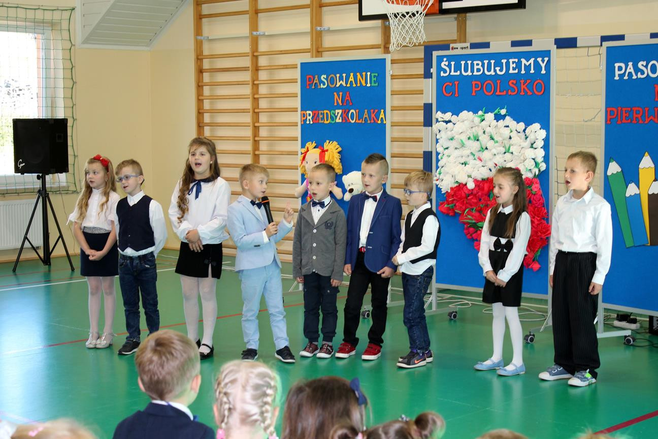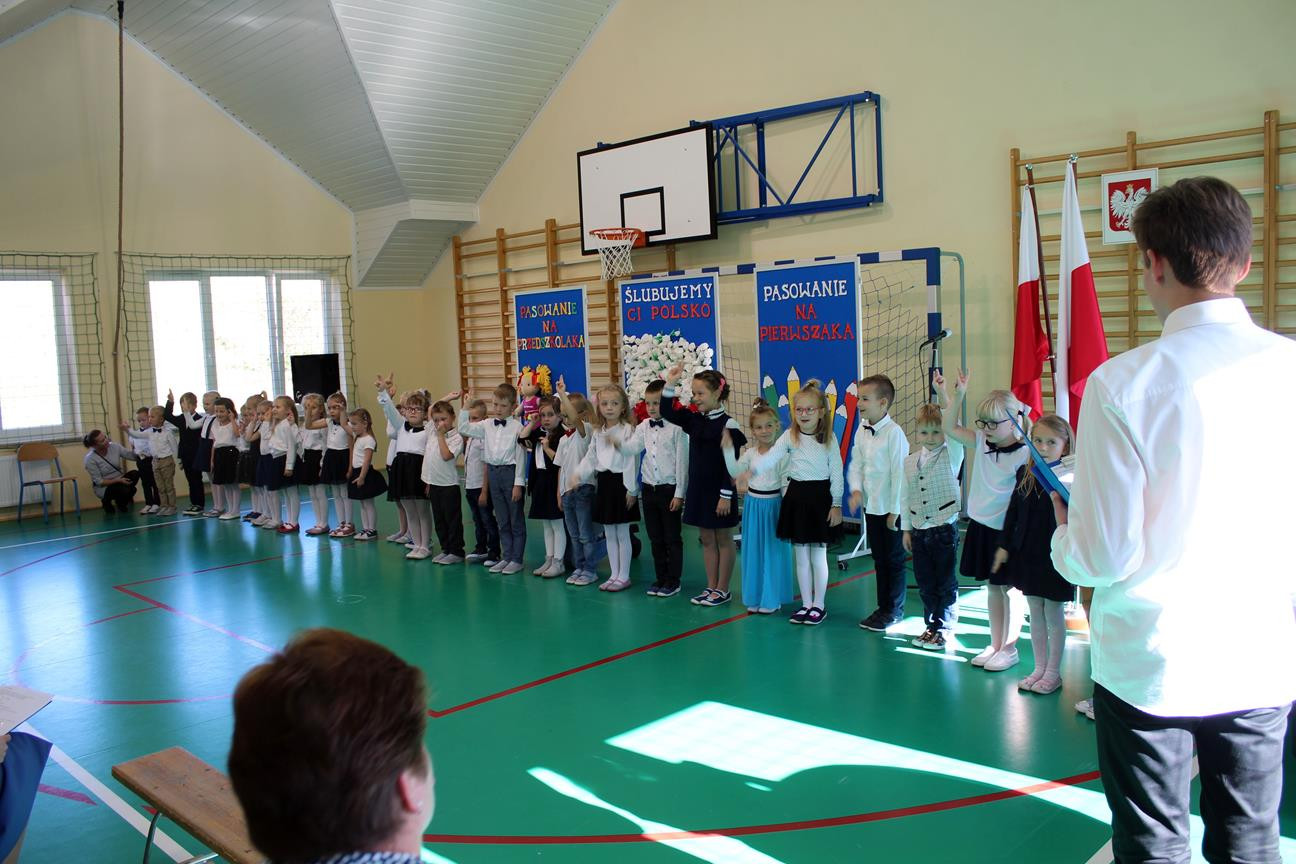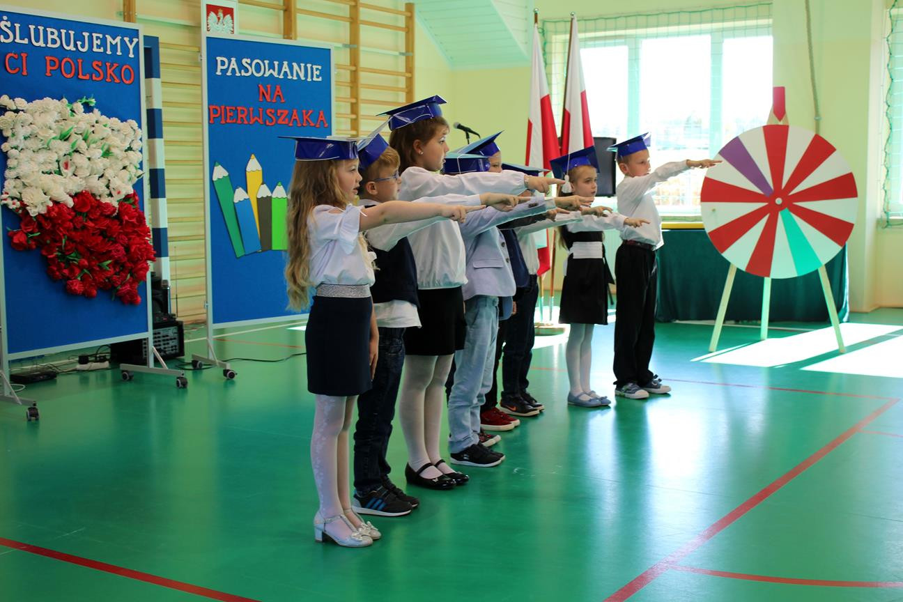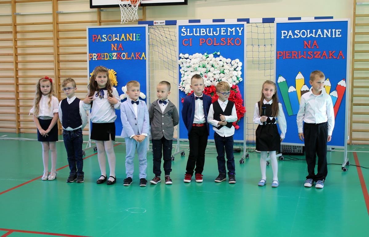 Do prowadzenia turnieju został zaproszony wójt gminy Jan Skrzekut. Uczniowie klasy pierwszej odpowiedzieli poprawnie na wszystkie pytania, które dotyczyły Polski, a szczególnie symboli narodowych. Po znakomicie zdanym teście wójt oraz Wiesława Tudaj – dyrektor szkoły dokonali aktu pasowania pierwszaków na uczniów. Przedszkolaki na pamiątkę pasowania otrzymały ordery.
