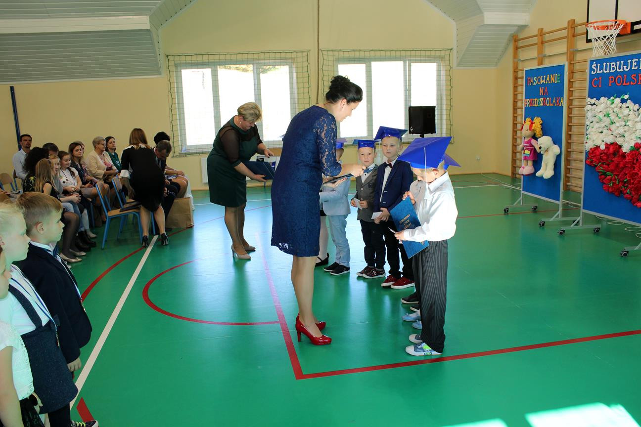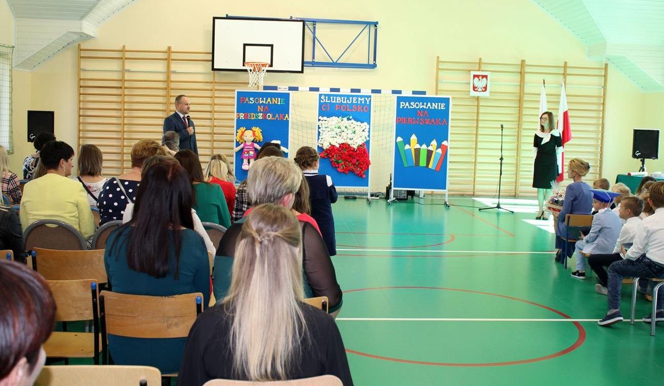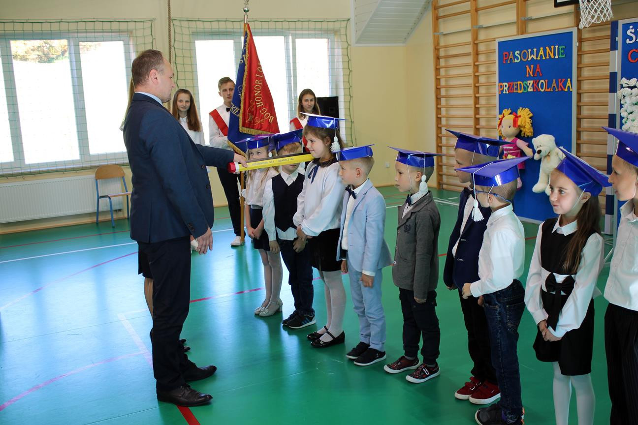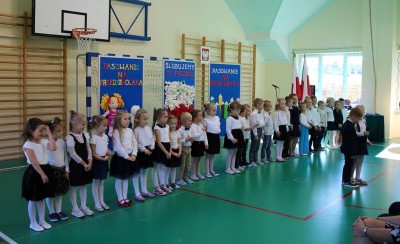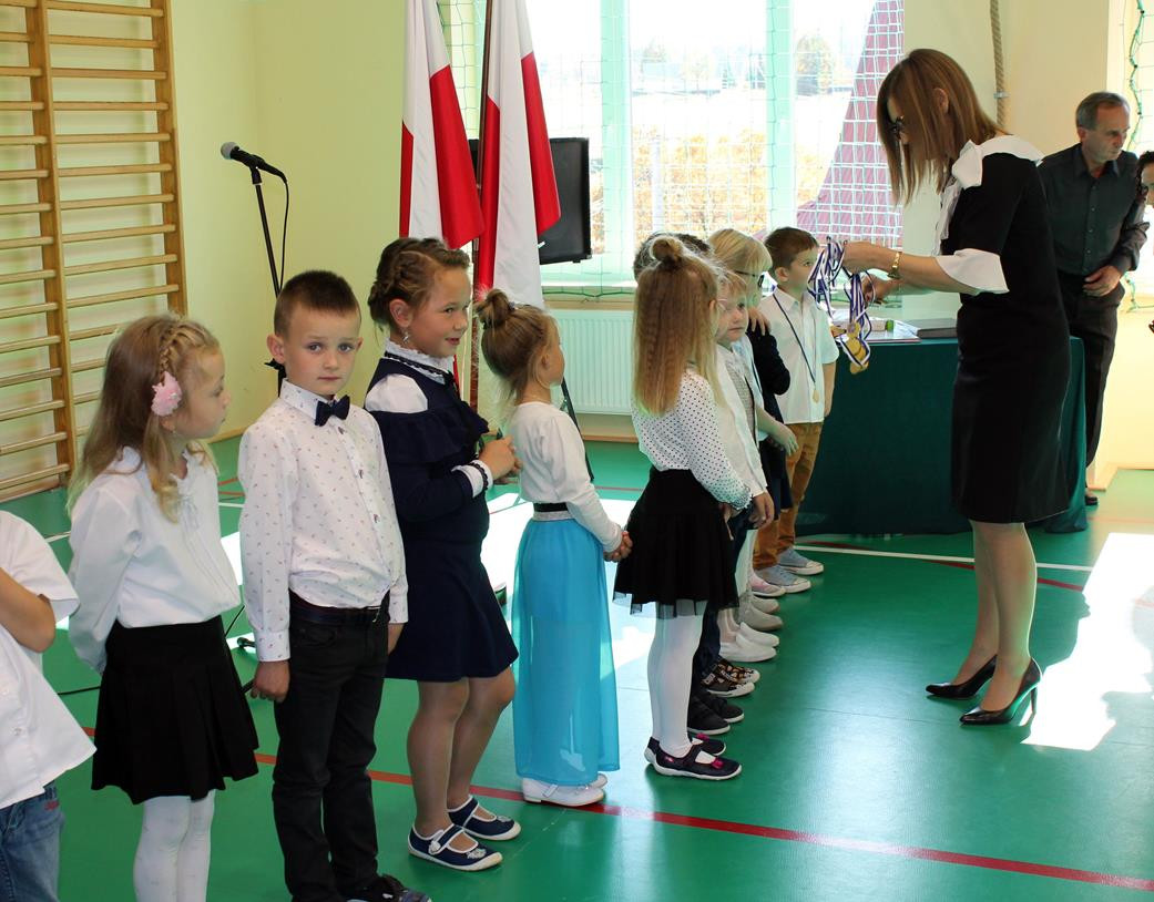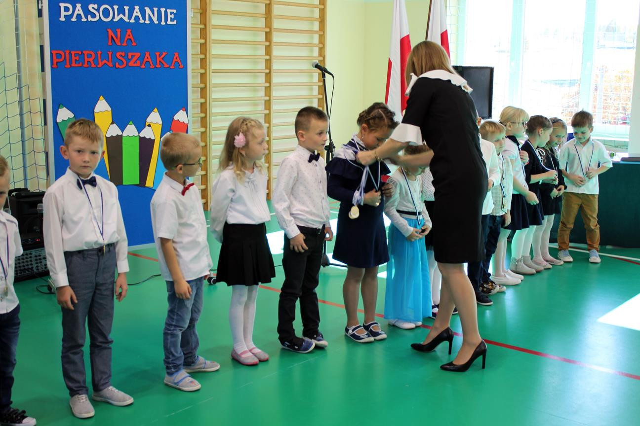 Do prowadzenia turnieju został zaproszony wójt gminy Jan Skrzekut. Uczniowie klasy pierwszej odpowiedzieli poprawnie na wszystkie pytania, które dotyczyły Polski, a szczególnie symboli narodowych. Po znakomicie zdanym teście wójt oraz Wiesława Tudaj – dyrektor szkoły dokonali aktu pasowania pierwszaków na uczniów. Przedszkolaki na pamiątkę pasowania otrzymały ordery.