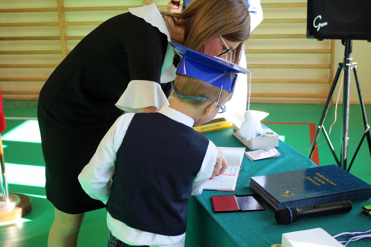 Na zakończenie uroczystości zaproszeni goście skierowali do uczniów, rodziców oraz nauczycieli kilka ciepłych słów, a przedszkolakom i pierwszoklasistom wręczyli słodkie upominki. Rodzice natomiast podarowali swoim pociechom pamiątkowe albumy. Po uroczystości dzieci, rodzice oraz zaproszeni goście udali się na poczęstunek.