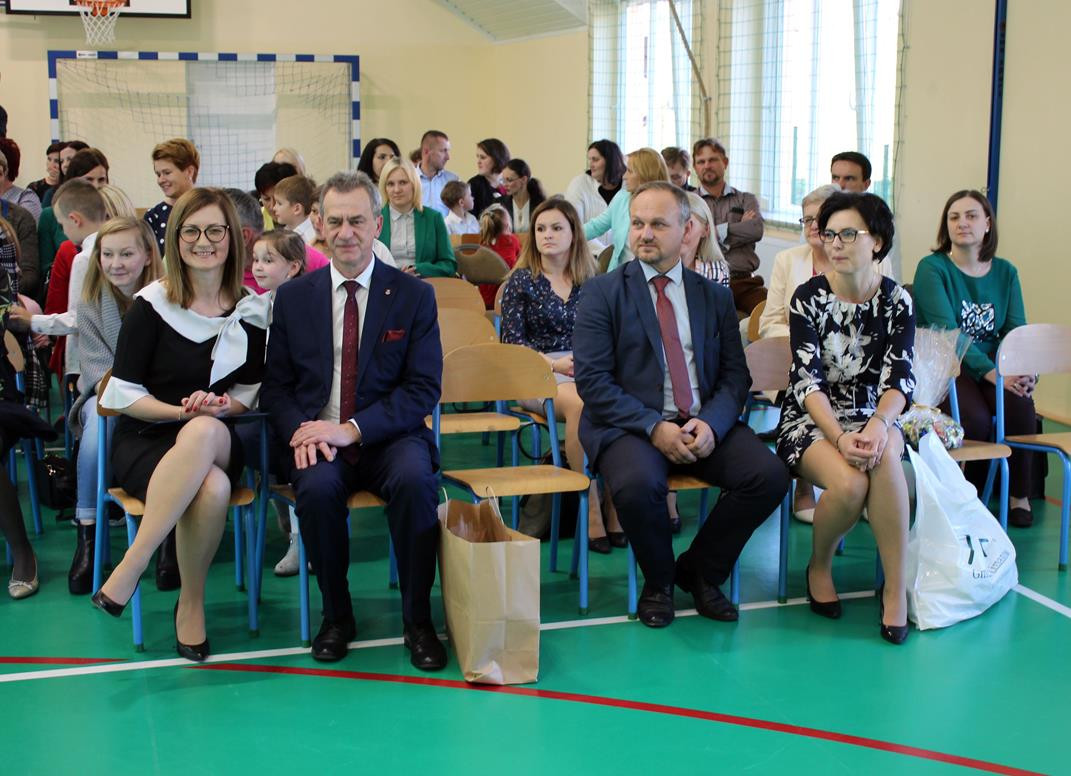 W tym radosnym święcie najmłodszych uczniów naszej szkoły uczestniczyli zaproszeni goście: Mieczysław Uryga – Starosta Powiatu Limanowskiego, Jan Skrzekut – Wójt Gminy Limanowa, Edyta Król Dyrektor Gminnego Zespołu Obsługi Szkół w Limanowej oraz Grzegorz Krzak – Zastępca Kierownika Wydziału Kultury i Promocji Urzędu Gminy Limanowa. Dzieciom, w tej podniosłej chwili towarzyszyli również rodzice oraz cała społeczność szkolna. Przedszkolaki oraz uczniowie klasy pierwszej zaprezentowali swoje umiejętności recytatorskie, wokalne i taneczne. Ponadto pierwszoklasiści wzięli udział w