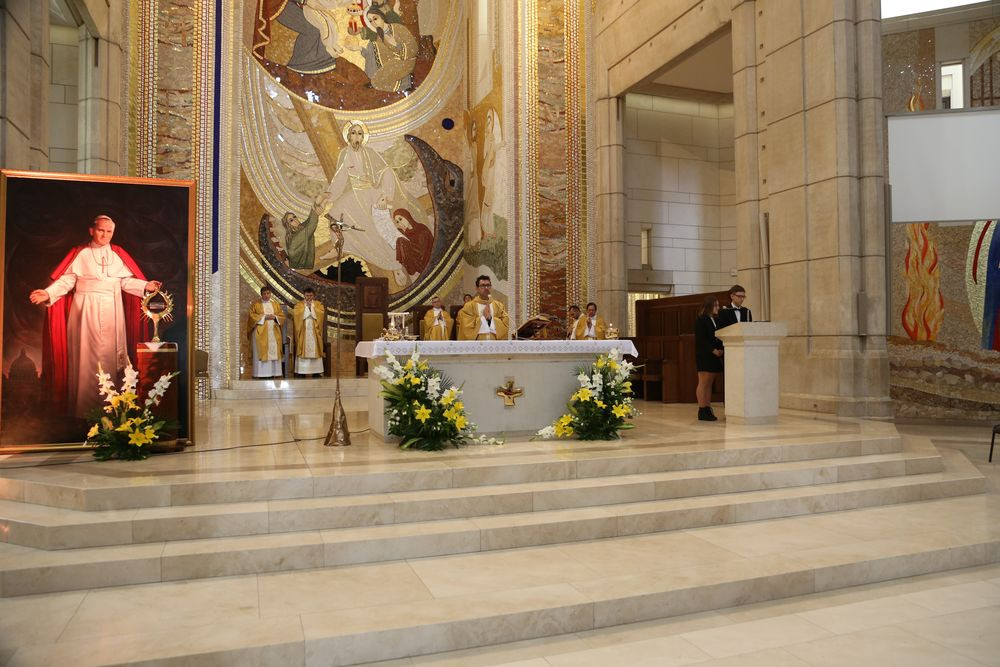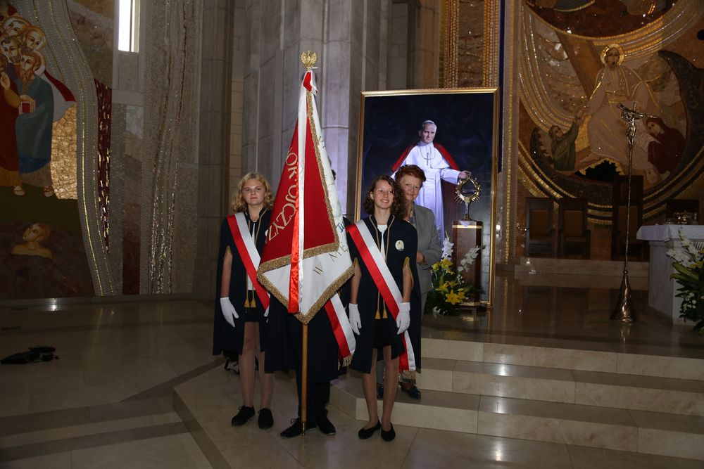 Zanim rozpoczęła się liturgia, powitano przedstawicieli wszystkich przybyłych szkół wraz z pocztami sztandarowymi. Jak się okazało, sanktuarium gościło blisko ośmiuset uczniów. Mszy św. przewodniczył ks. Łukasz Piórkowski, który wygłosił kazanie. W homilii, skierowanej głównie do młodych, ksiądz kilkukrotnie podkreślał, aby nastolatkowie nie tracili czasu, by właściwie wykorzystali każdą daną im chwilę oraz rozwijali swoje talenty. Ks. Piórkowski, znany dzieciom z programu „Ziarno”, po raz kolejny udowodnił, że jest doskonałym mówcą, bowiem uczniowie z wielkim skupieniem i zaangażowaniem słuchali jego słów.