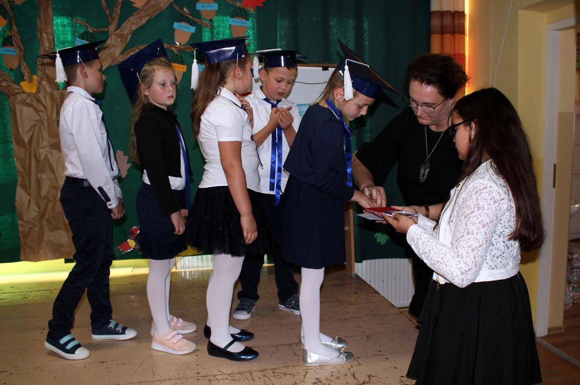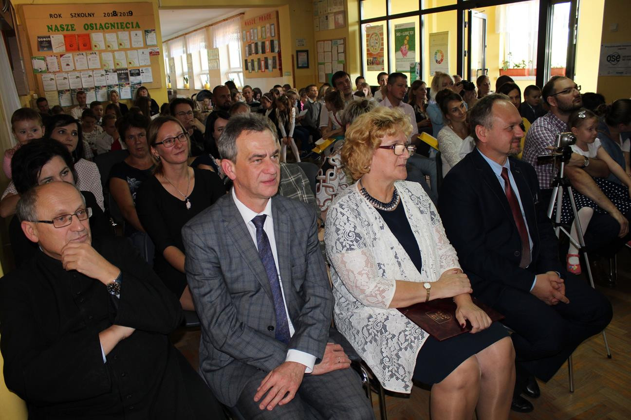 Przyjęcie do grona uczniów było dniem wyjątkowym nie tylko dla dzieci i ich rodziców, ale całej szkolnej społeczności. Wydarzeniem od dłuższego czasu żyli wychowawcy i nauczyciele , a także pozostali uczniowie szkoły którzy obecni byli podczas czwartkowej uroczystości. Dyrektor Szkoły Halina Śmierciak do wszystkich zebranych skierowała słowa podziękowania za tak liczne przybycie, a szczególne słowa wytrwałości i niegasnącego zapału do pogłębiania wiedzy, skierowała w stronę nowych uczniów, życząc by szkoła była dla nich także miejscem do rozwijania zainteresowań.