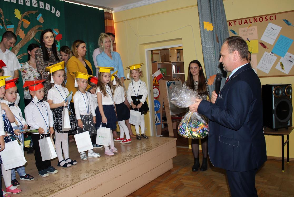 W uroczystości ślubowania uczniów w Szkole Podstawowej w Kaninie wzięli udział zaproszeni goście m.in. Starosta Limanowski Mieczysław Uryga, Jan Skrzekut Wójt Gminy Limanowa oraz Dyrektor GZOS Edyta Król, którzy również złożyli najmłodszym życzenia jak najlepszych wyników w nauce, a nauczycielom zadowolenia i satysfakcji z pracy z dziećmi i młodzieżą.