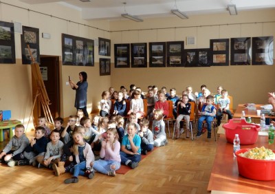 Do biblioteki w tym dniu przybyły klasy I i II Szkoły Podstawowej nr 1 w Starej Wsi razem z wychowawczyniami: Lidią Kazior i Anną Twaróg. Udział w warsztatach wzięły także Panie z Grupy Samopomocowej działającej przy Gminnej Bibliotece Publicznej w Starej Wsi, których przywitał Jacenty Musiał dyrektor biblioteki.