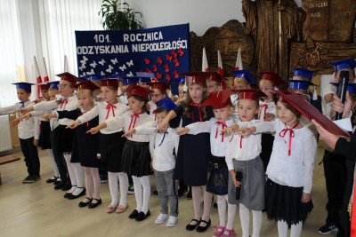 Dnia 8 listopada w Szkole Podstawowej nr 1 im. Jana Pawła II w Męcinie odbyła się uroczystość ślubowania uczniów klas pierwszych. Było to bardzo ważne wydarzenie nie tylko dla najmłodszych, ale również dla ich rodziców. W ślubowaniu wzięli również udział zaproszeni goście: Wójt Gminy Limanowa – Jan Skrzekut, Dyrektor GZOS w Limanowej - Edyta Król, Zastępca Kierownika Wydziału Kultury i Promocji Urzędu Gminy Limanowa - Grzegorz Krzak, Dyrekcja szkoły oraz nauczyciele i uczniowie. Przy tej okazji wspólnie uczczono 101. rocznicę odzyskania przez Polskę niepodległości.