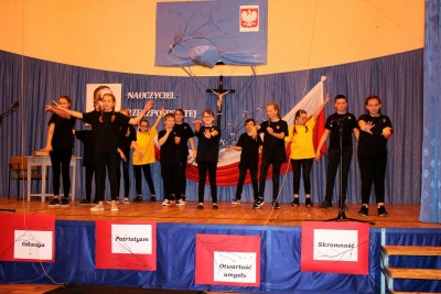 Na koniec uroczystości Dyrektor wraz z Wójtem Gminy wręczyli dyplomy i nagrody uczniom za osiągnięcia w konkursach zorganizowanych z okazji Święta Szkoły.