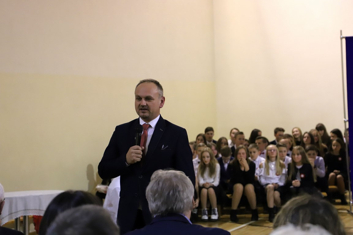 W tym roku formuła uroczystości została nieco zmieniona i każda klasa prezentowała przygotowaną przez siebie pieśń patriotyczną. Ich starania były oceniane przez trzyosobowe jury w składzie: pani Joanna Dutka – nauczyciel muzyki, pani Urszula Biernat – sołtys Starej Wsi oraz pani Sylwia Postrożny – przewodnicząca Rady Rodziców.