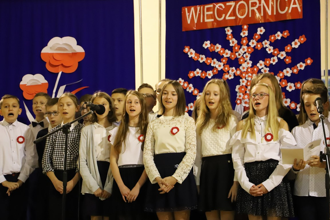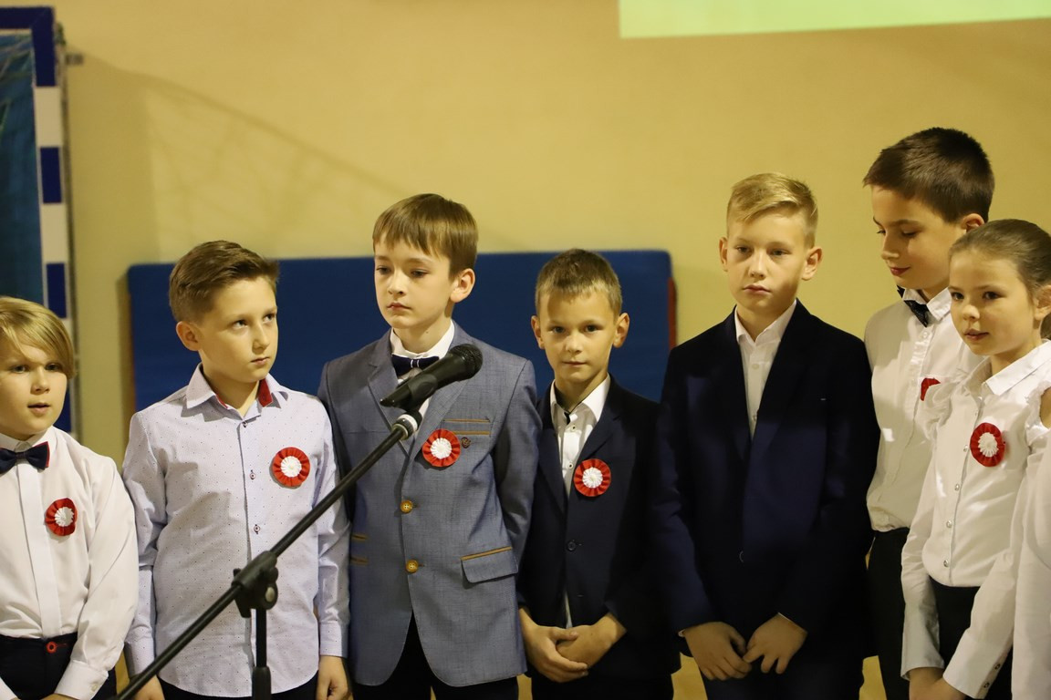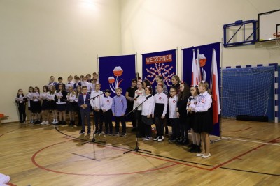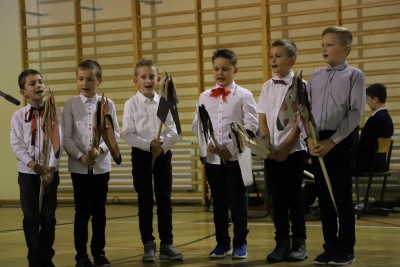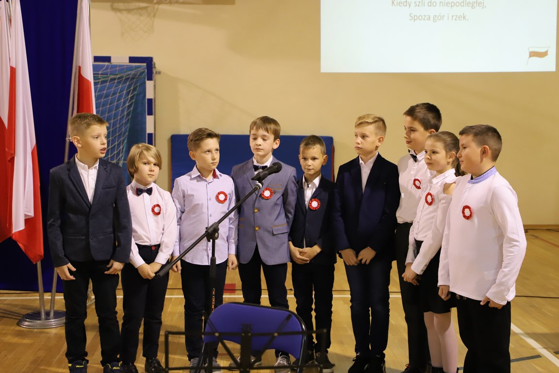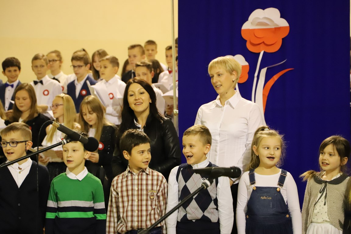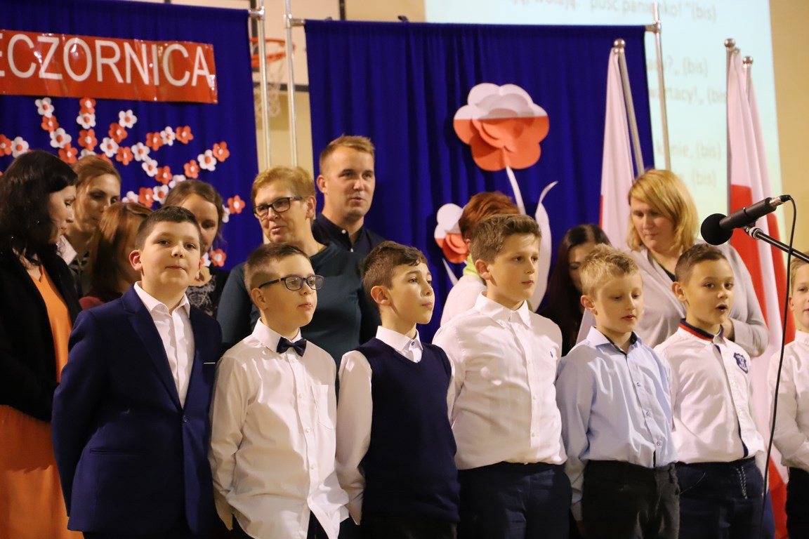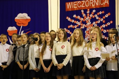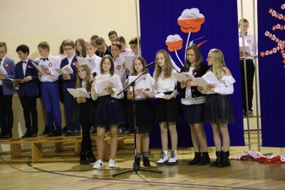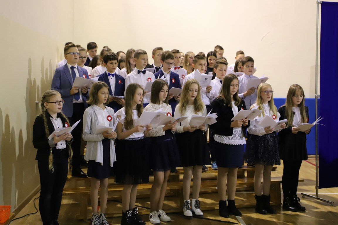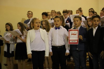Po zakończeniu zmagań konkursowych szkolny chór przygotowany przez panią Iwonę Koczanowicz wykonał jeszcze kilka utworów patriotycznych stworzonych przez współczesnych artystów.