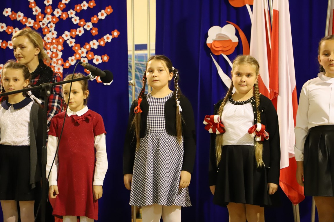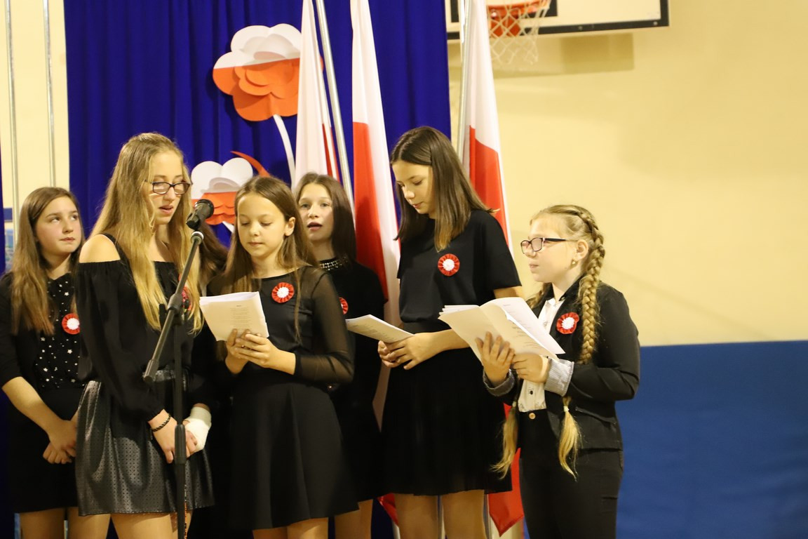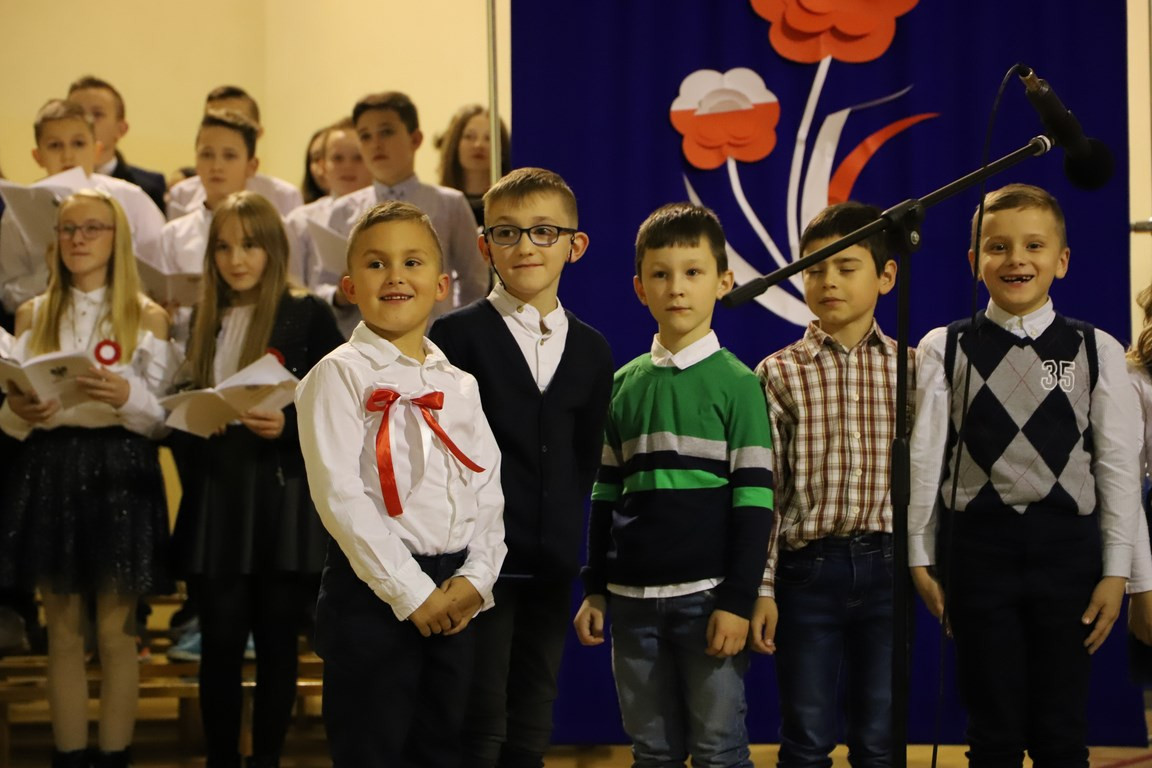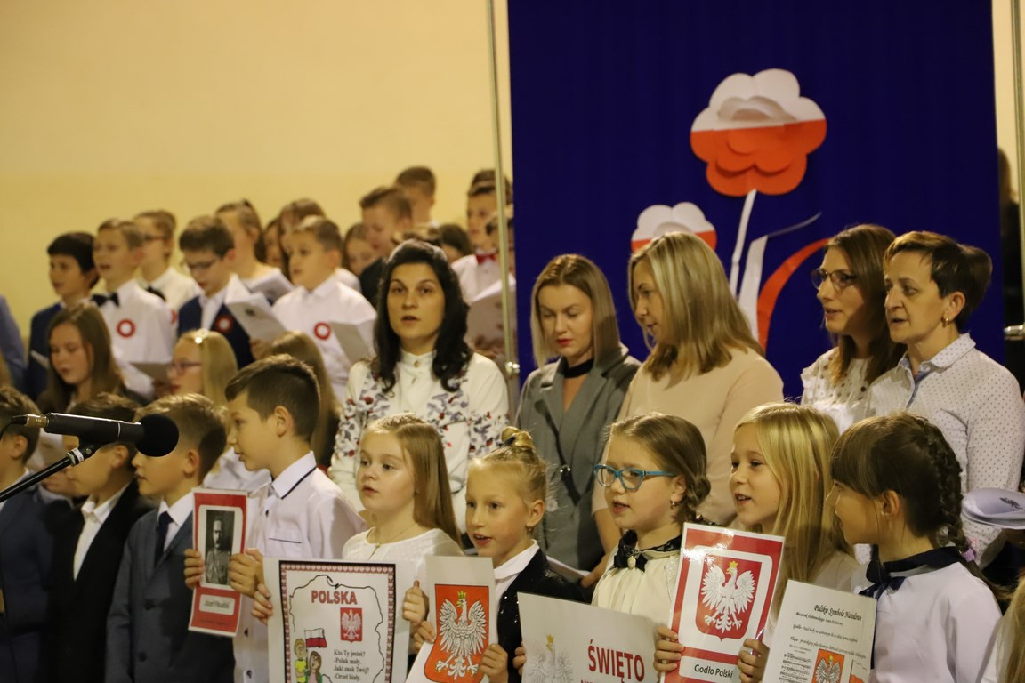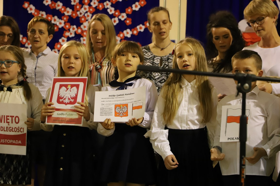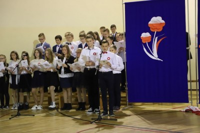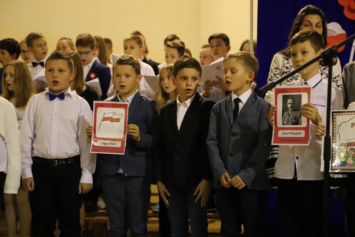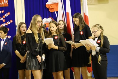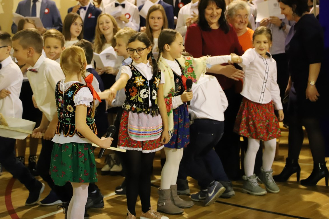 Po zakończeniu zmagań konkursowych szkolny chór przygotowany przez panią Iwonę Koczanowicz wykonał jeszcze kilka utworów patriotycznych stworzonych przez współczesnych artystów.