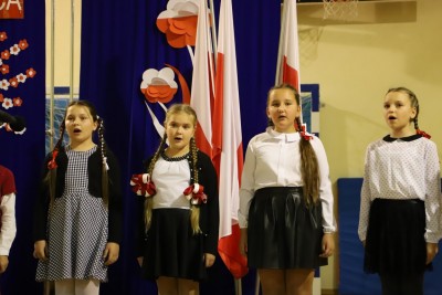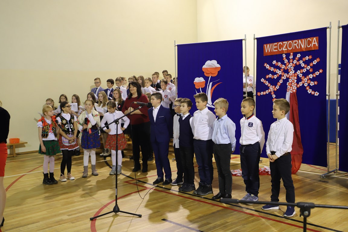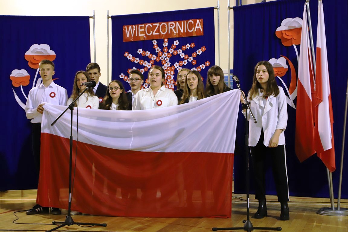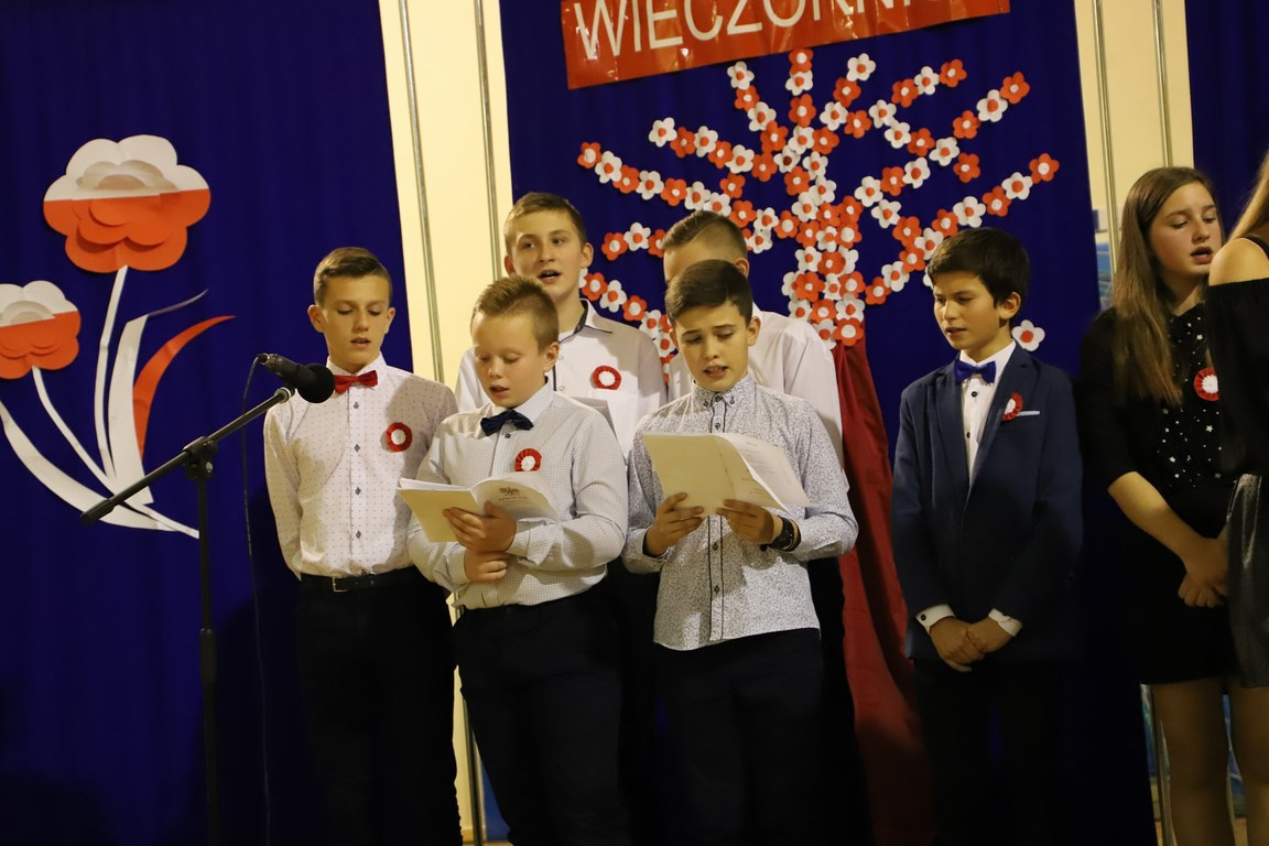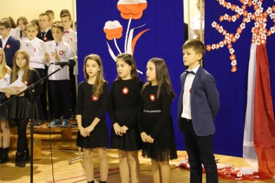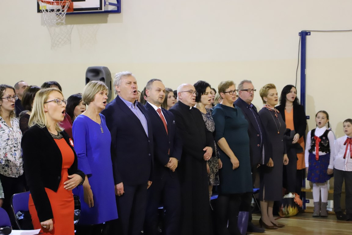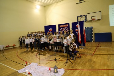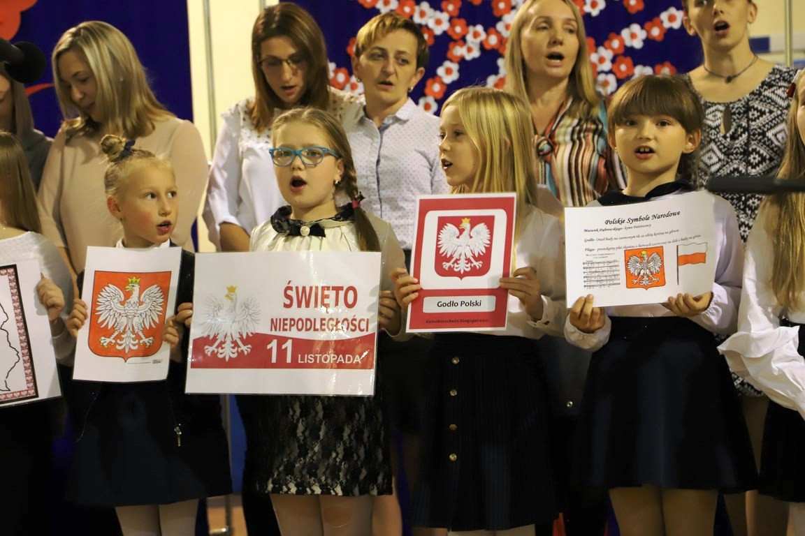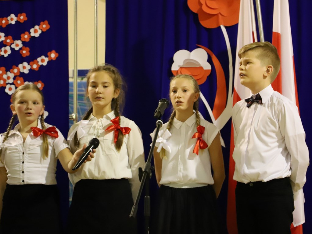 Po zakończeniu zmagań konkursowych szkolny chór przygotowany przez panią Iwonę Koczanowicz wykonał jeszcze kilka utworów patriotycznych stworzonych przez współczesnych artystów.