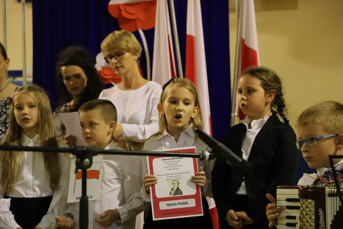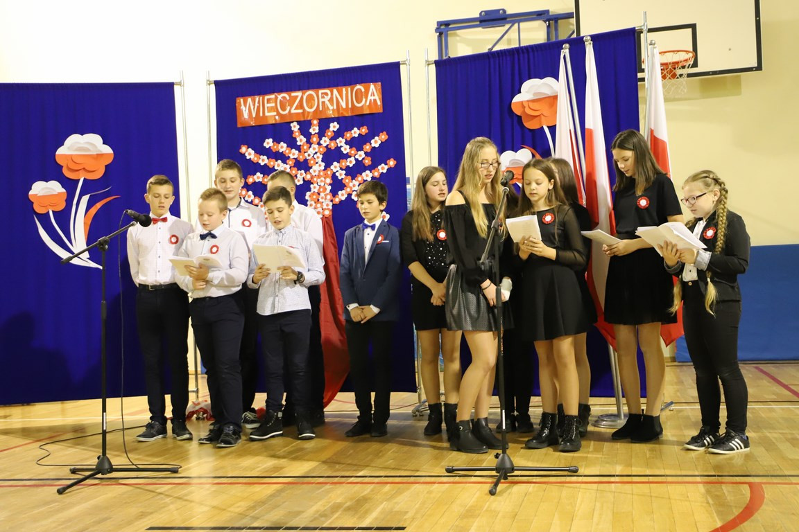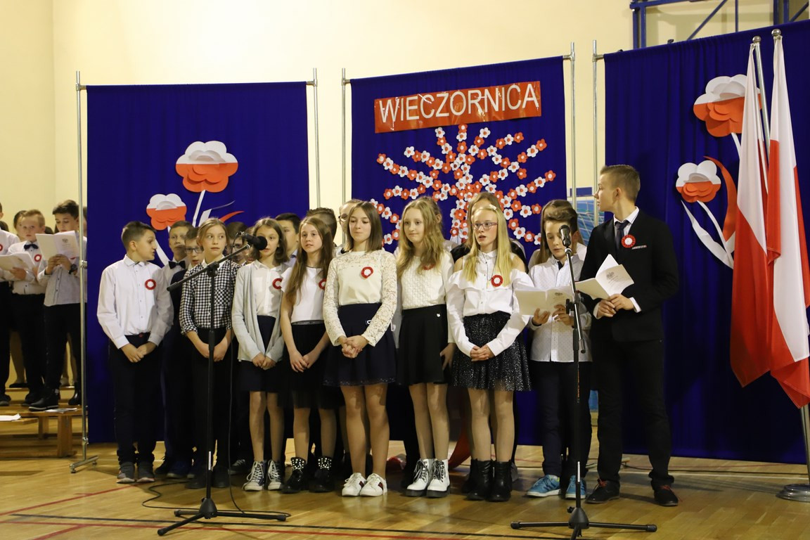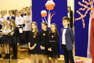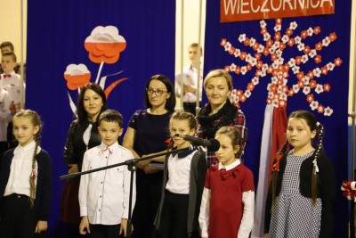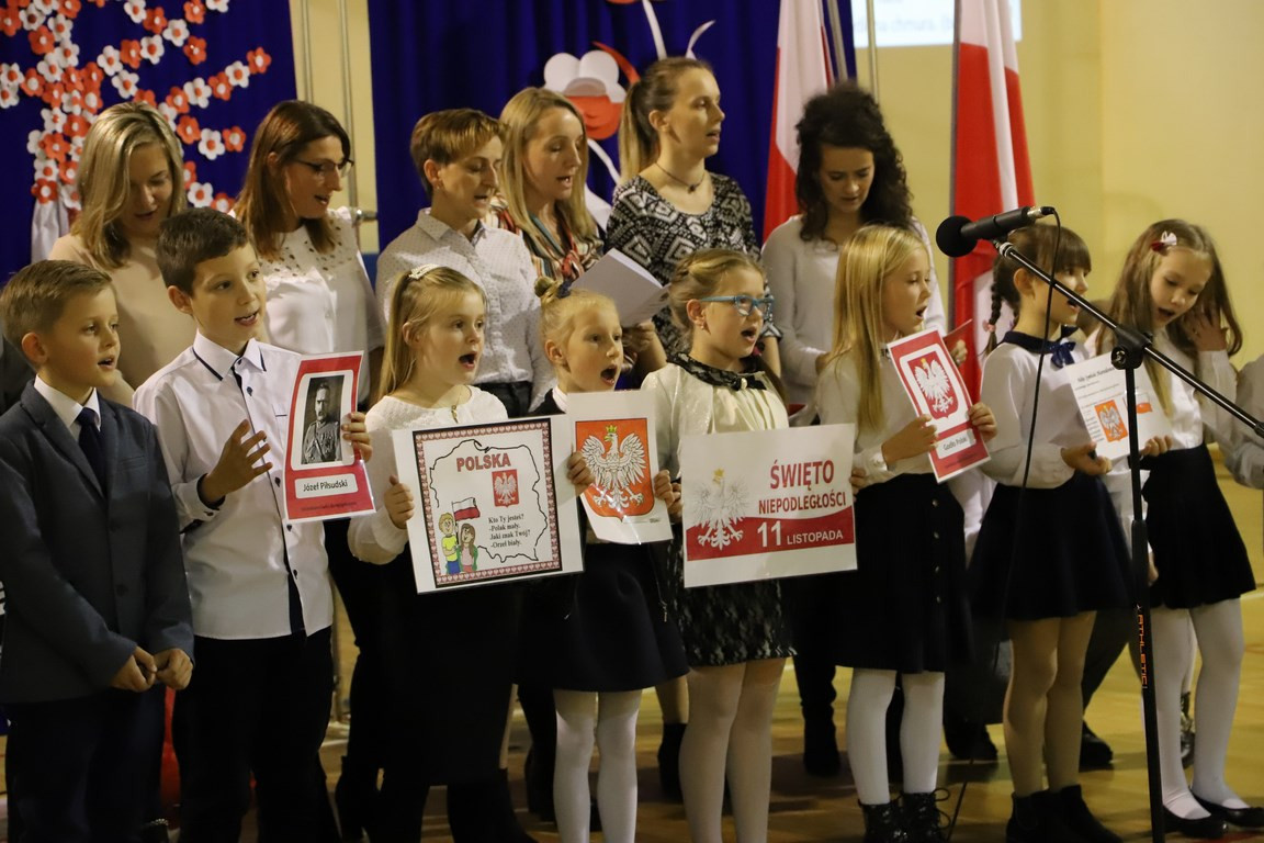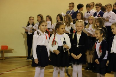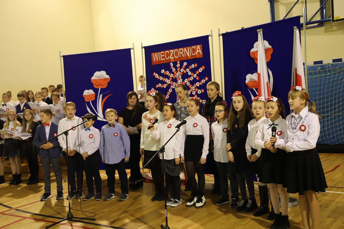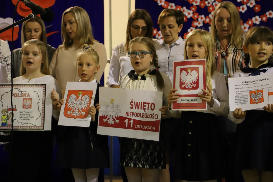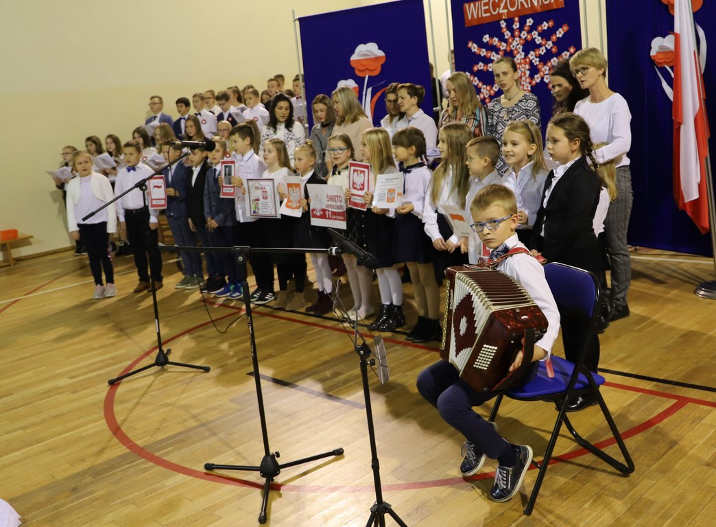 Po zakończeniu zmagań konkursowych szkolny chór przygotowany przez panią Iwonę Koczanowicz wykonał jeszcze kilka utworów patriotycznych stworzonych przez współczesnych artystów.