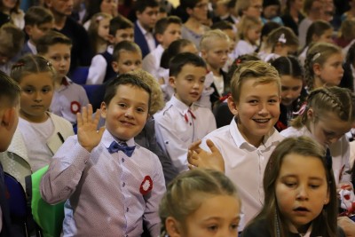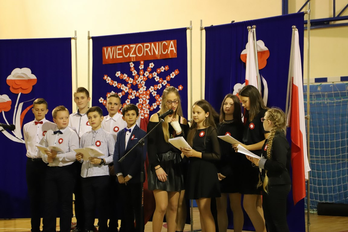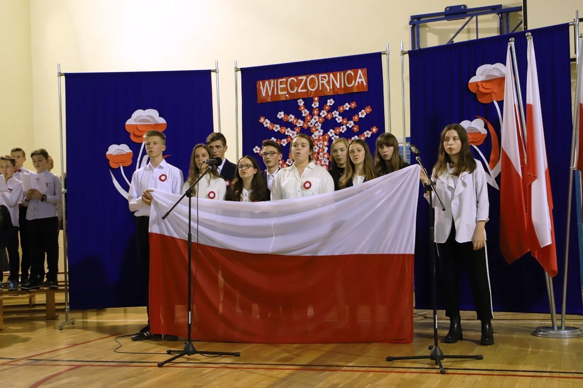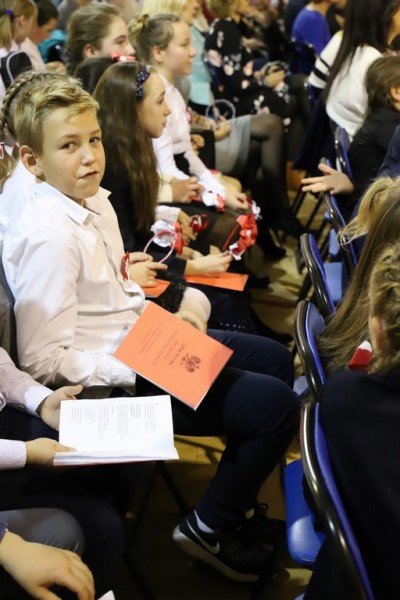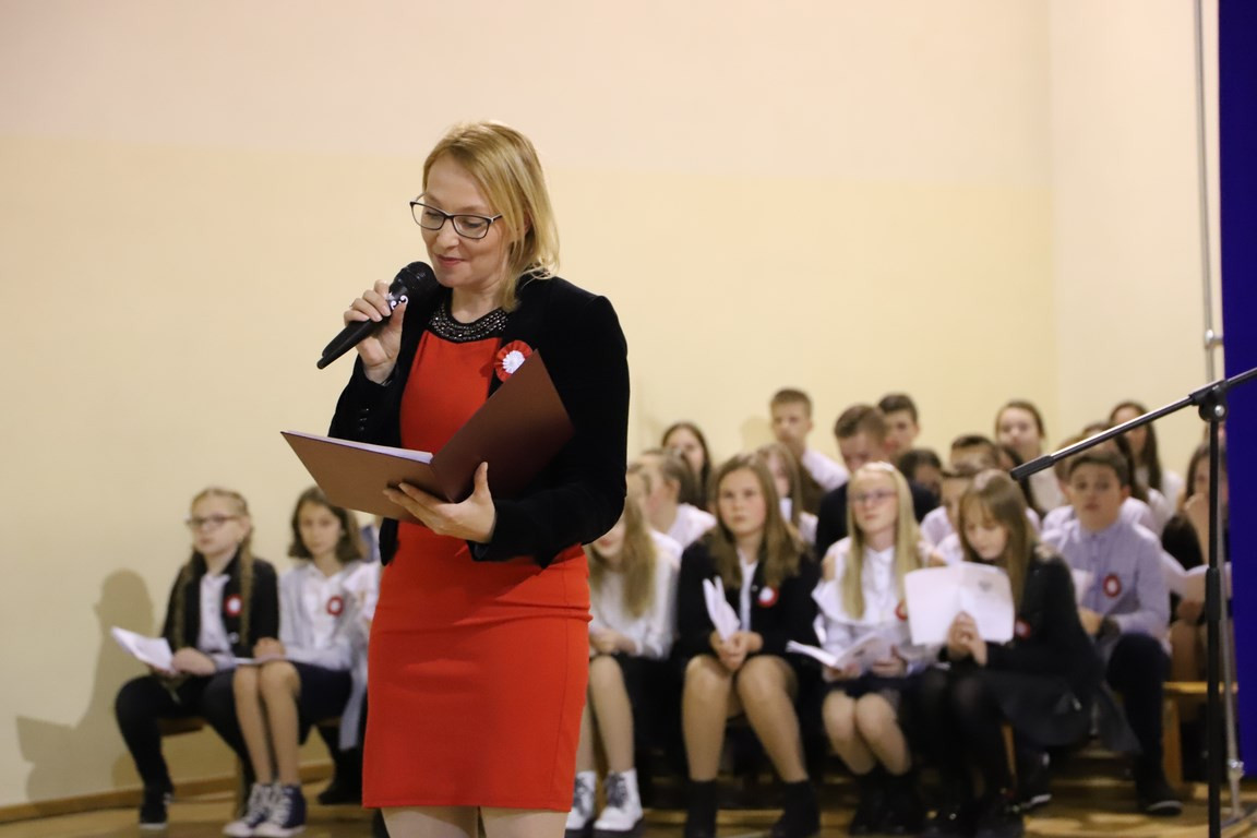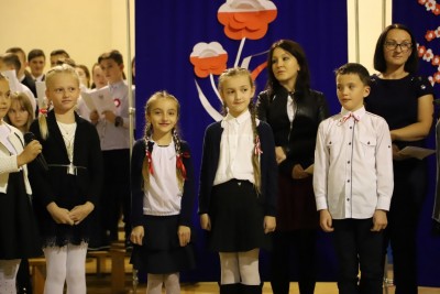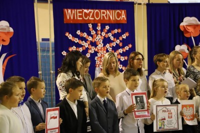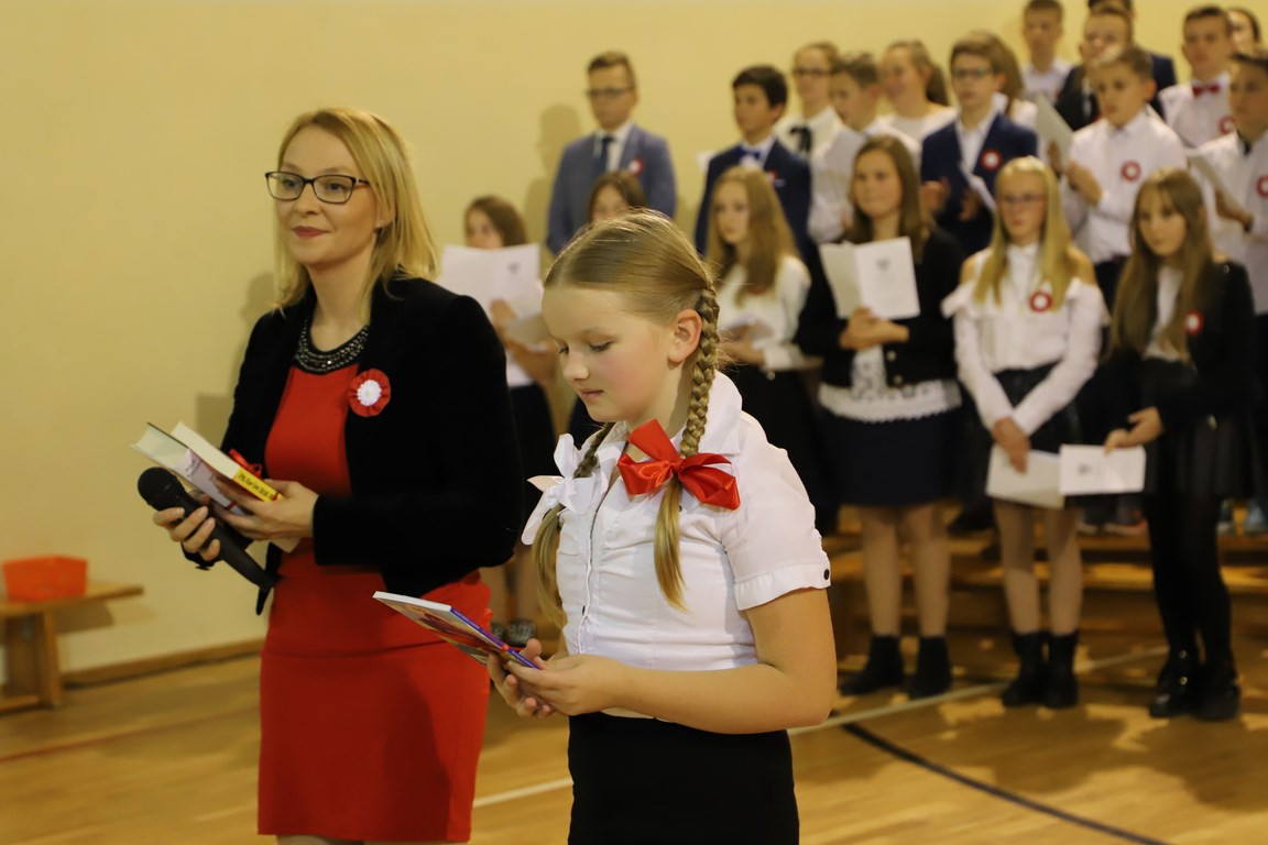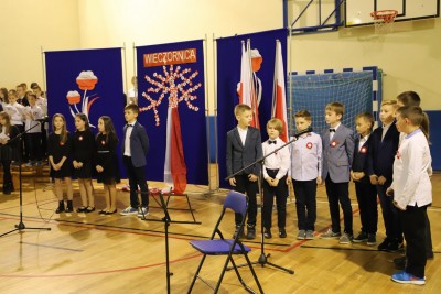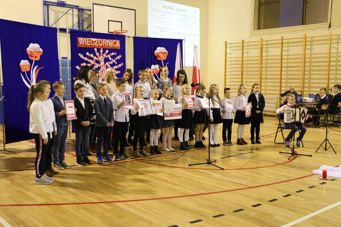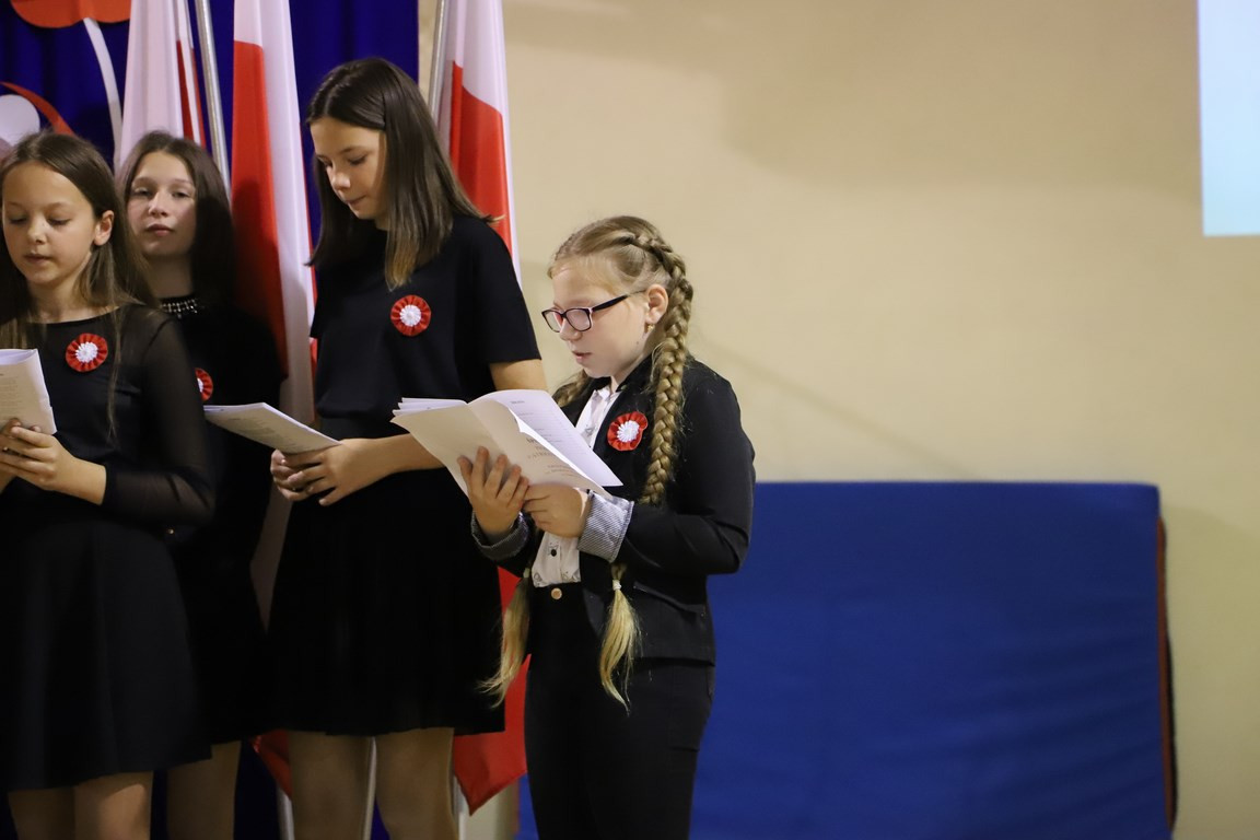 Po zakończeniu zmagań konkursowych szkolny chór przygotowany przez panią Iwonę Koczanowicz wykonał jeszcze kilka utworów patriotycznych stworzonych przez współczesnych artystów.
