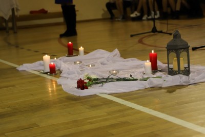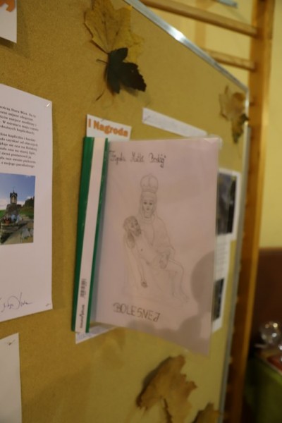 Następnie wyróżniono najlepsze plakaty stworzone przez poszczególne klasy w ramach konkursu plastycznego pt. „Polski Wrzesień 1939” organizowanego przez Samorząd Uczniowski w ramach całorocznego międzyklasowego wspłózawodnictwa o tytuł SUPER KLASY. Rozdano również nagrody uczniom, którzy zwyciężyli w konkursie literackim pt. „Wiersz Bohaterom Westerplatte”. Wszystkich zgromadzonych poruszyła recytacja jednego z utworów – Godzina 4:45. Następnie przedstawiano wyniki oraz nagrodzono zwycięzców organizowanego przez Radę Parafialną konkursu pt. „Przydrożny znak Boga”.