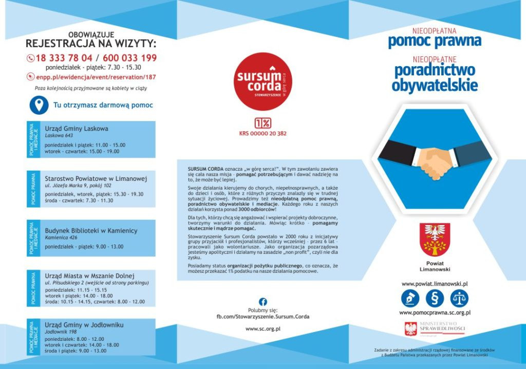 Do końca 2018 roku z nieodpłatnej pomocy prawnej mogły korzystać osoby, które spełniały określone warunki. Warto przypomnieć, że od 1 stycznia br. znowelizowane przepisy umożliwiają korzystanie z tej formy pomocy każdej osobie, która nie jest w stanie ponieść kosztów płatnej porady prawnej. Tego typu wsparcie jest także dostępne w Powiecie Limanowskim. Jak to wygląda w praktyce?