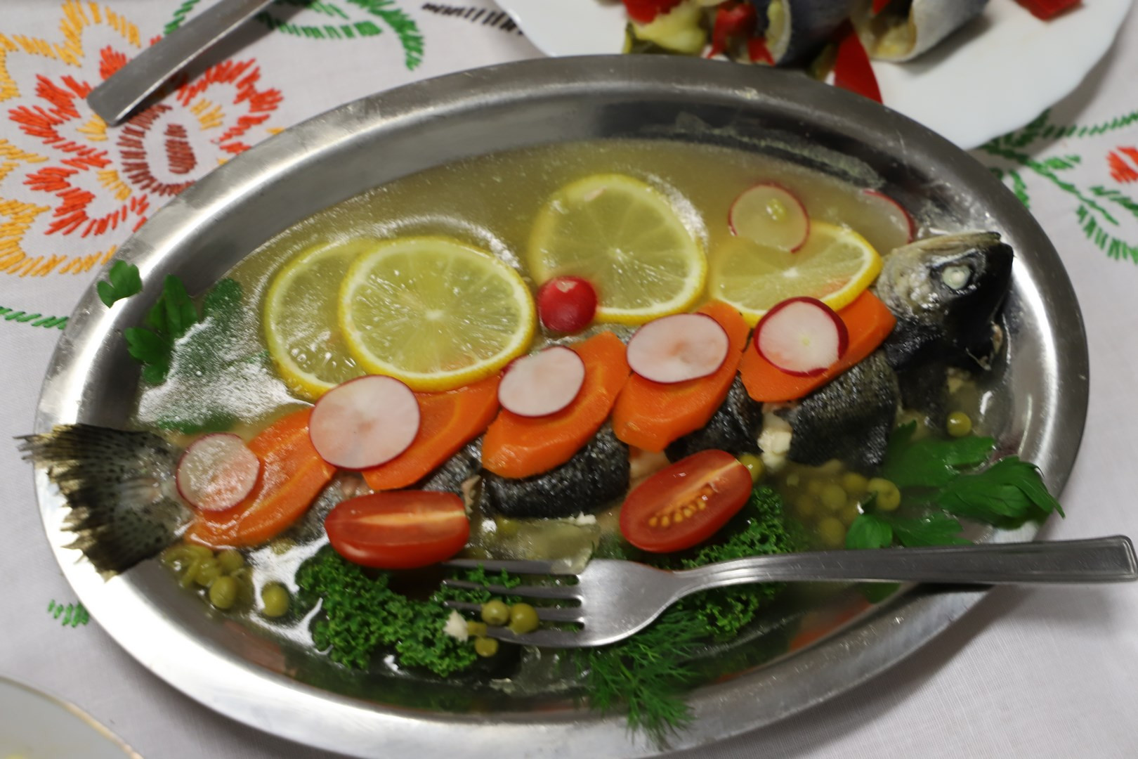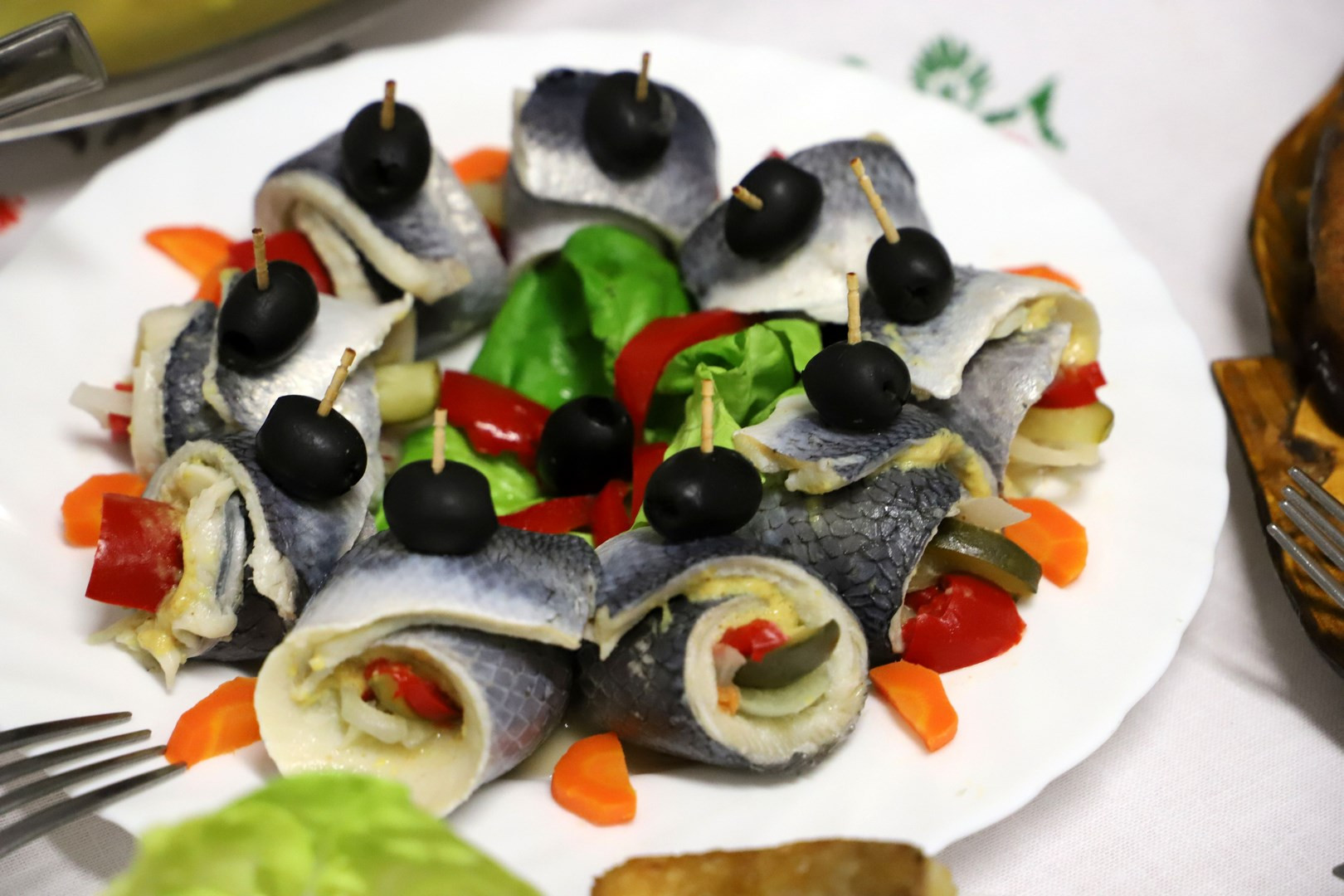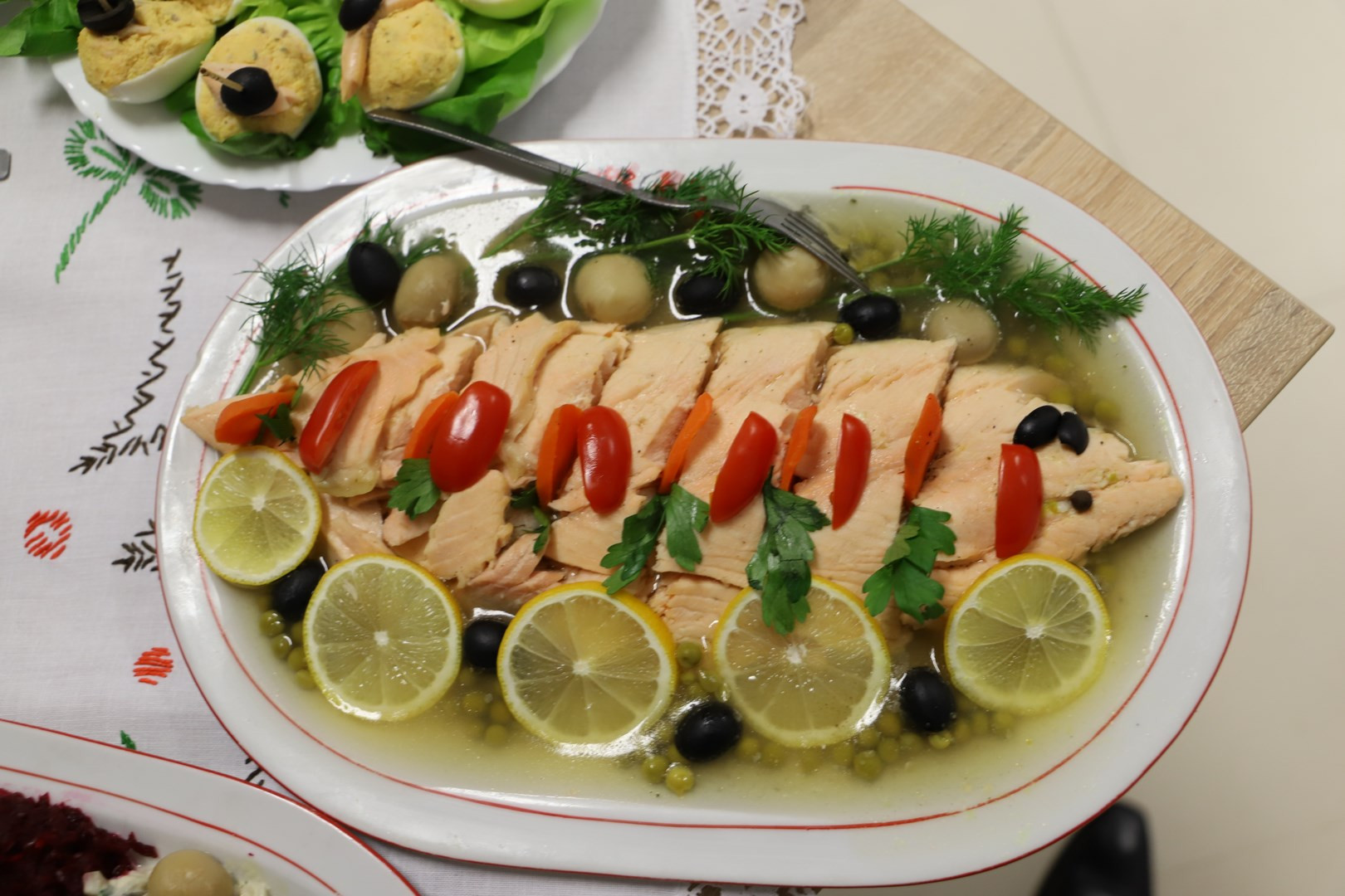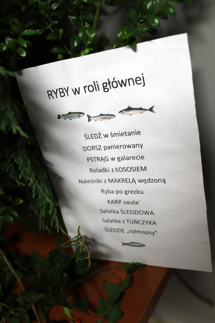 Wśród przygotowane przez Panie z KGW potraw rybnych znalazły się m.in. śledź w śmietanie, dorsz panierowany, pstrąg w galarecie, roladki z łososiem czy ryba po grecku. Na deser członkinie KGW serwowały również słodkie wypieki.