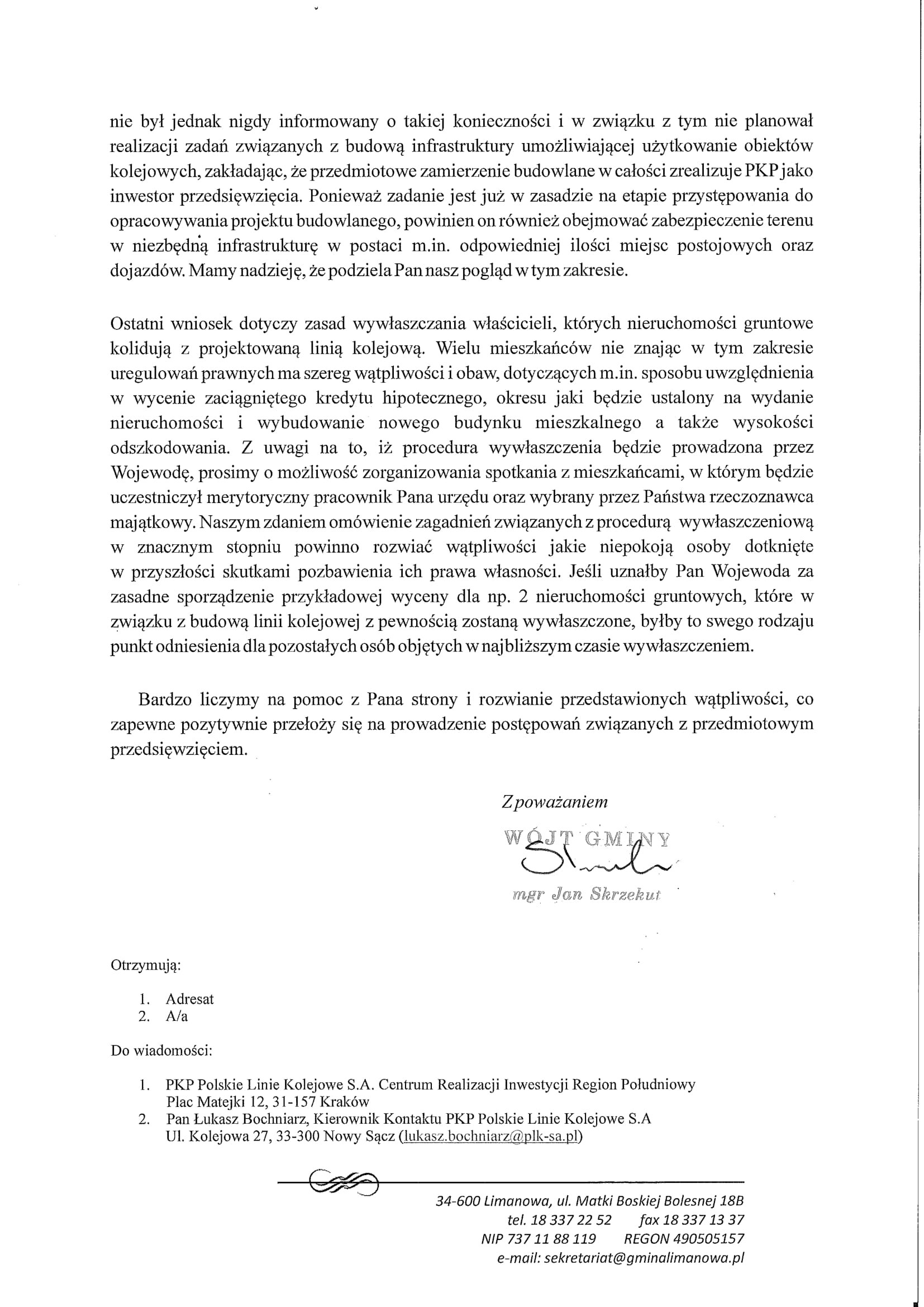 Prosimy również o zapoznanie się z dotychczasowymi informacjami jakie w wyniku korespondencji z PKP PLK S.A. uzyskano (w załączeniu).