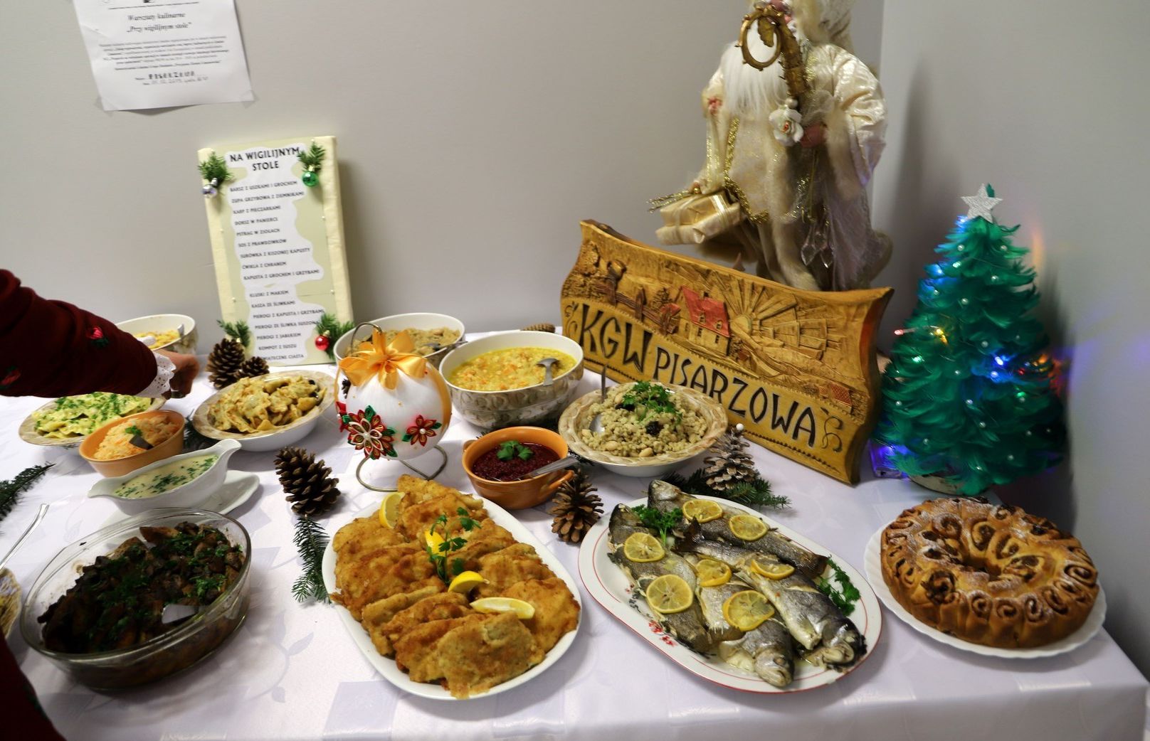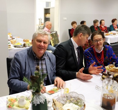 A "Przy wigilijnym stole" spotkały się jako gospodarz - Koło Gospodyń Wiejskich w Pisarzowej oraz KGW z: Męciny, Sowlin i Kłodnego, a także reprezentantki KGW z Łososiny Górnej, Pasierbca i Rupniowa Centrum.