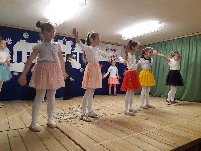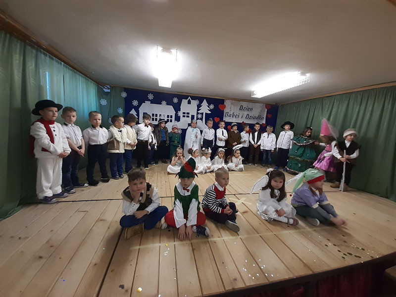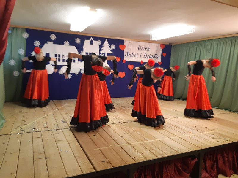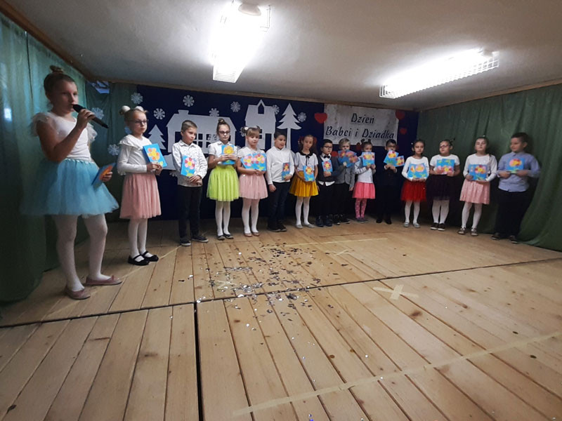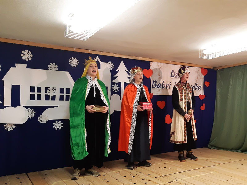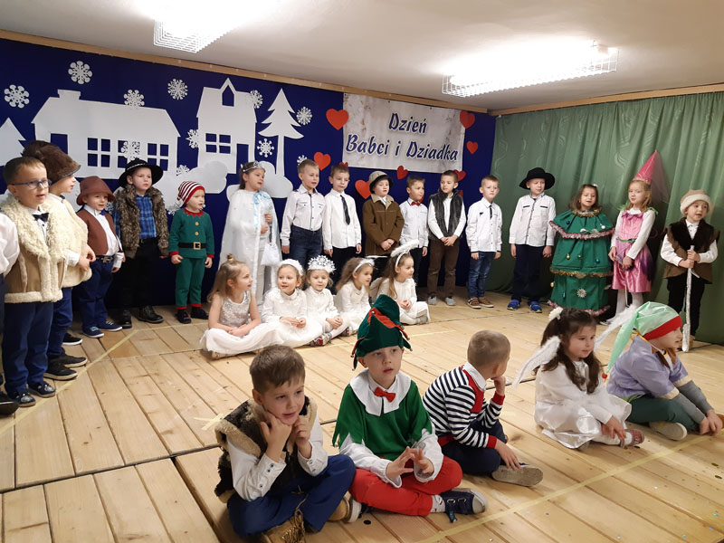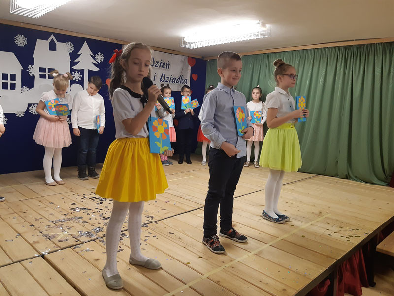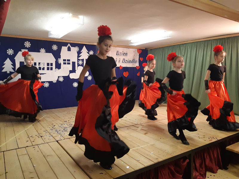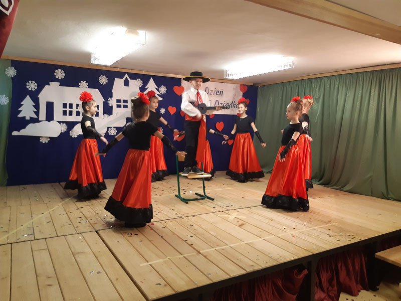 Część artystyczna rozpoczęła się od tańca aniołów w wykonaniu uczennic z klasy V. Następnie dzieci z klas 0 – III przedstawiły montaż słowno – muzyczny, przygotowany pod kierunkiem swoich wychowawców. Były to wzruszające wiersze i piosenki okolicznościowe związane tematycznie z Dniem Babci i Dziadka. Nie zabrakło też radosnych tańców - „Chocolade” w wykonaniu uczniów klasy drugiej oraz „Tańca hiszpańskiego” w wykonaniu uczniów klasy trzeciej. Uroczystość uświetnił występ dziecięcej Grupy Kolędniczej z Gwiazdą oraz młodzieżowej grupy „Trzej Królowie”.