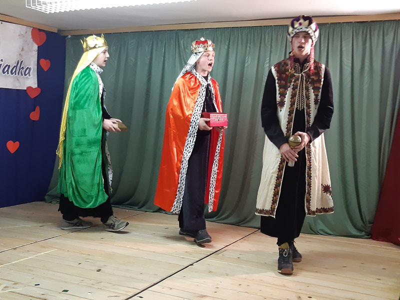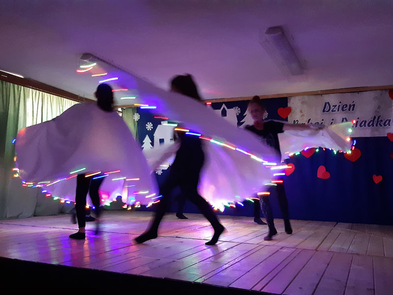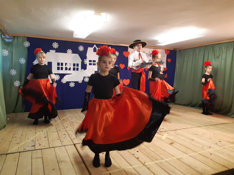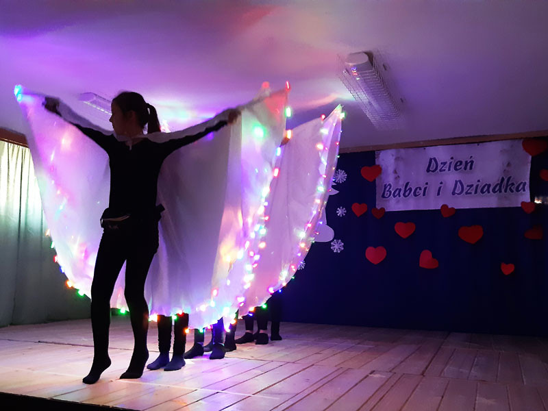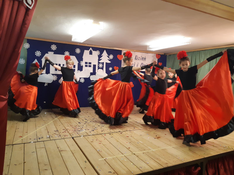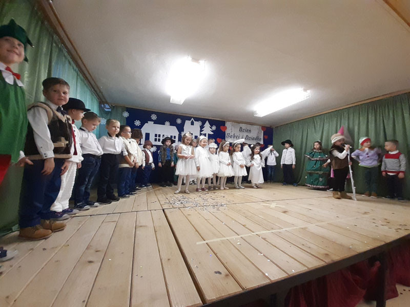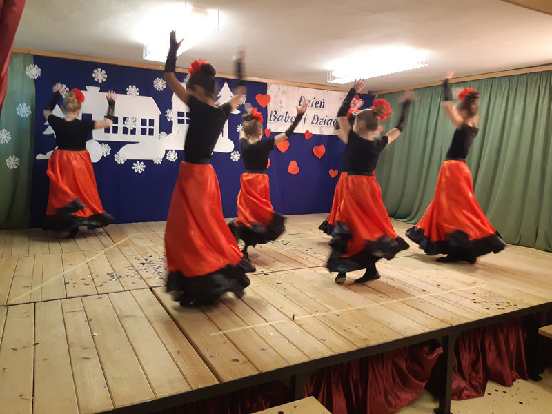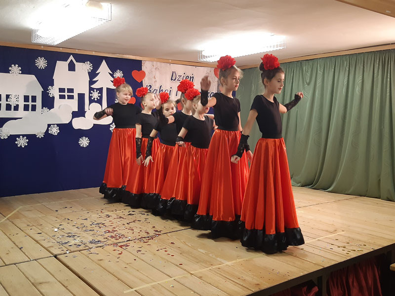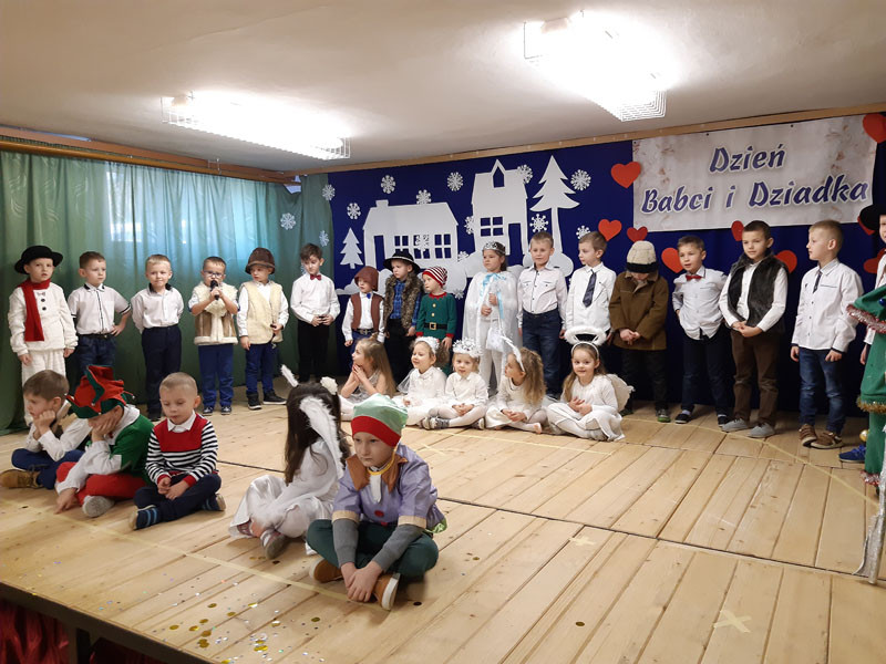 Część artystyczna rozpoczęła się od tańca aniołów w wykonaniu uczennic z klasy V. Następnie dzieci z klas 0 – III przedstawiły montaż słowno – muzyczny, przygotowany pod kierunkiem swoich wychowawców. Były to wzruszające wiersze i piosenki okolicznościowe związane tematycznie z Dniem Babci i Dziadka. Nie zabrakło też radosnych tańców - „Chocolade” w wykonaniu uczniów klasy drugiej oraz „Tańca hiszpańskiego” w wykonaniu uczniów klasy trzeciej. Uroczystość uświetnił występ dziecięcej Grupy Kolędniczej z Gwiazdą oraz młodzieżowej grupy „Trzej Królowie”.