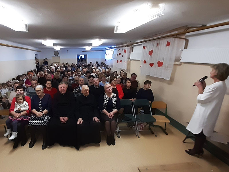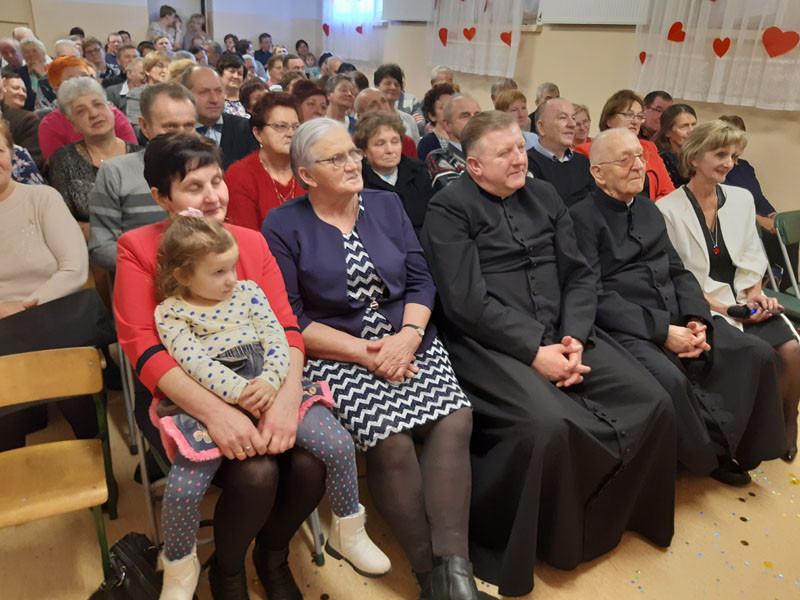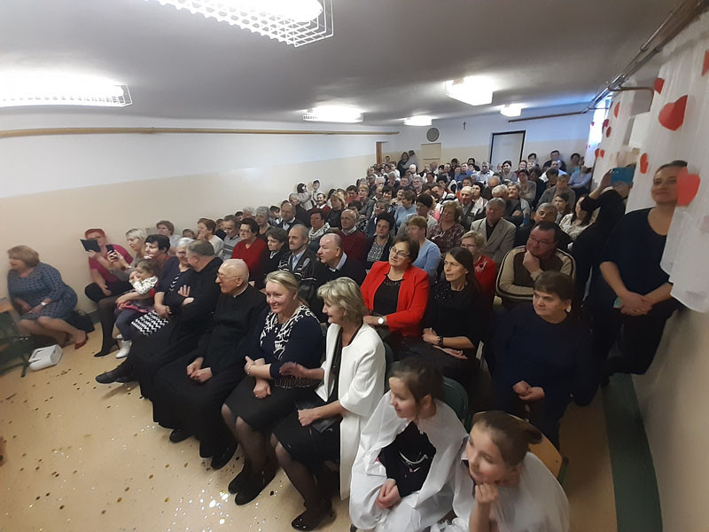 Część artystyczną poprzedziła msza święta odprawiona w kościele parafialnym w Siekierczynie w intencji Babć i Dziadków. Następnie wszyscy udali się do szkoły. Pani dyrektor serdecznie powitała przybyłych gości: Babcie i Dziadków, Księdza Prałata Stanisława Kozę, Księdza Proboszcza Kazimierza Matusika oraz przewodniczącą Rady Rodziców Barbarę Biedroń. Dostojnym jubilatom złożyła najserdeczniejsze życzenia.