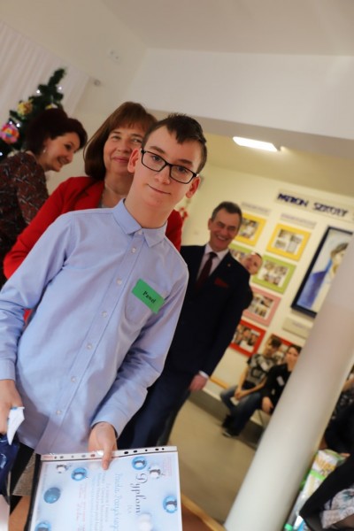 Na ręce Marii Rusin organizatorzy składają serdeczne podziękowania paniom z szkolnej kuchni przygotowującym poczęstunek dla uczestników przedsięwzięcia, podziękowania kierują też do pracowników obsługi placówki oraz uczniów szkoły za pomoc przy organizacji wydarzenia - Natalii Józkowicz, Aleksandrze Żurek, Patrycji Twaróg, Darii Sędzik, Marcie Woźniak, Kamilowi Klimek, Mateuszowi Natanek, Mateuszowi Twaróg, Magdalenie Juszczak, Patrycji Zapała, Wiktorii Sowa-Wróbel, Weronice Gawron, Natalii Smoter oraz Laurze Zapalskiej. Podziękowania należą się również absolwentkom, które z chęcią odwiedziły mury szkoły angażując się w pomoc przy organizacji Konkursu - Klaudii Pączek, Aleksandrze Nowak, Sophie Benk i Karolinie Sędzik.