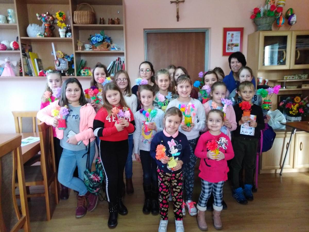 Z kolei w bibliotece w Rupniowie Halina Piechnik wykonywała z dziećmi kwiaty z bibuły i krepiny, a w drugim tygodniu wspólnie z Paniami z KGW Rupniów przeprowadziła warsztaty plastyczne „Tworzenie kartek okolicznościowych” oraz kwiaty z krepiny.