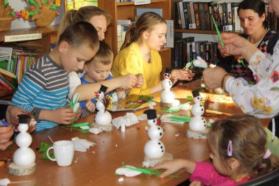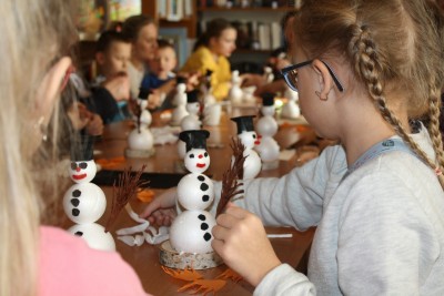 Z uwagi na fakt, że zajęcia miały miejsce w bibliotece, gdzie książka jest "główną bohaterką", nie mogło zabraknąć także prezentacji książkowych nowości dla dzieci, nie tylko o zimowej tematyce. Po warsztatach najmłodsi wyposażeni w bałwanki i bajkowe lektury, które wypożyczyli na dalsze dni ferii z uśmiechem wrócili do domów. Już teraz zapraszamy dzieci na kolejne spotkania.