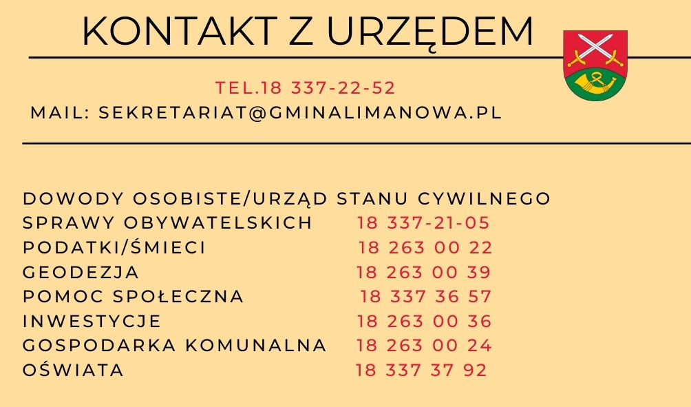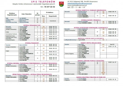 Poniżej telefony do poszczególnych Wydziałów Urzędu Gminy Limanowa: