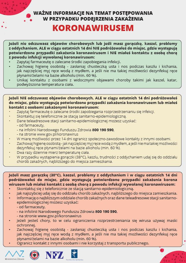 Jeśli w ciągu 14 dni byłeś w miejscu gdzie wystepuje KORONAWIURS i zaobserwowałeś u siebie objawy, takie jak